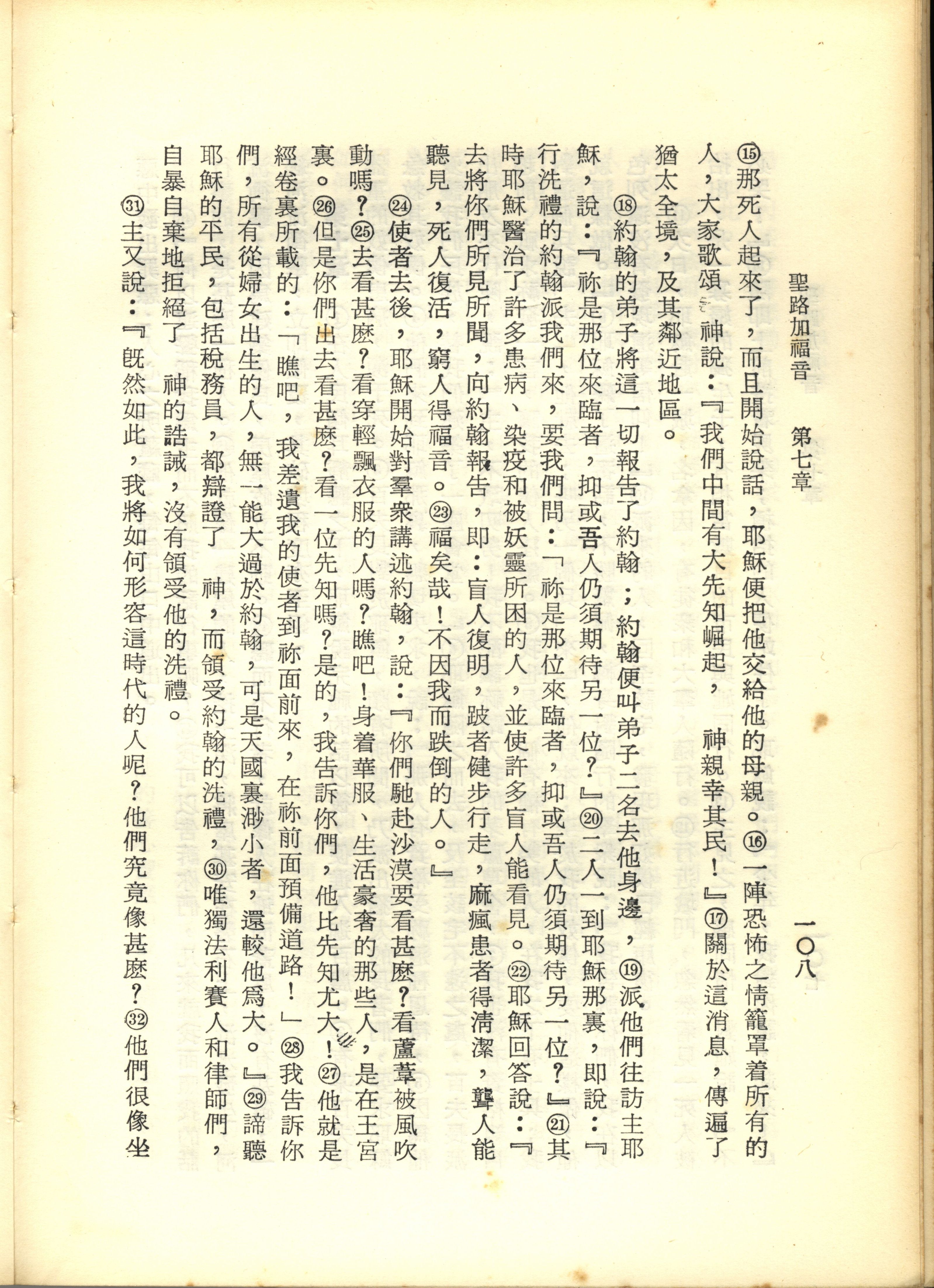 1967年新譯新約全集 路加福音 7 章 15 節到 7 章 32 節