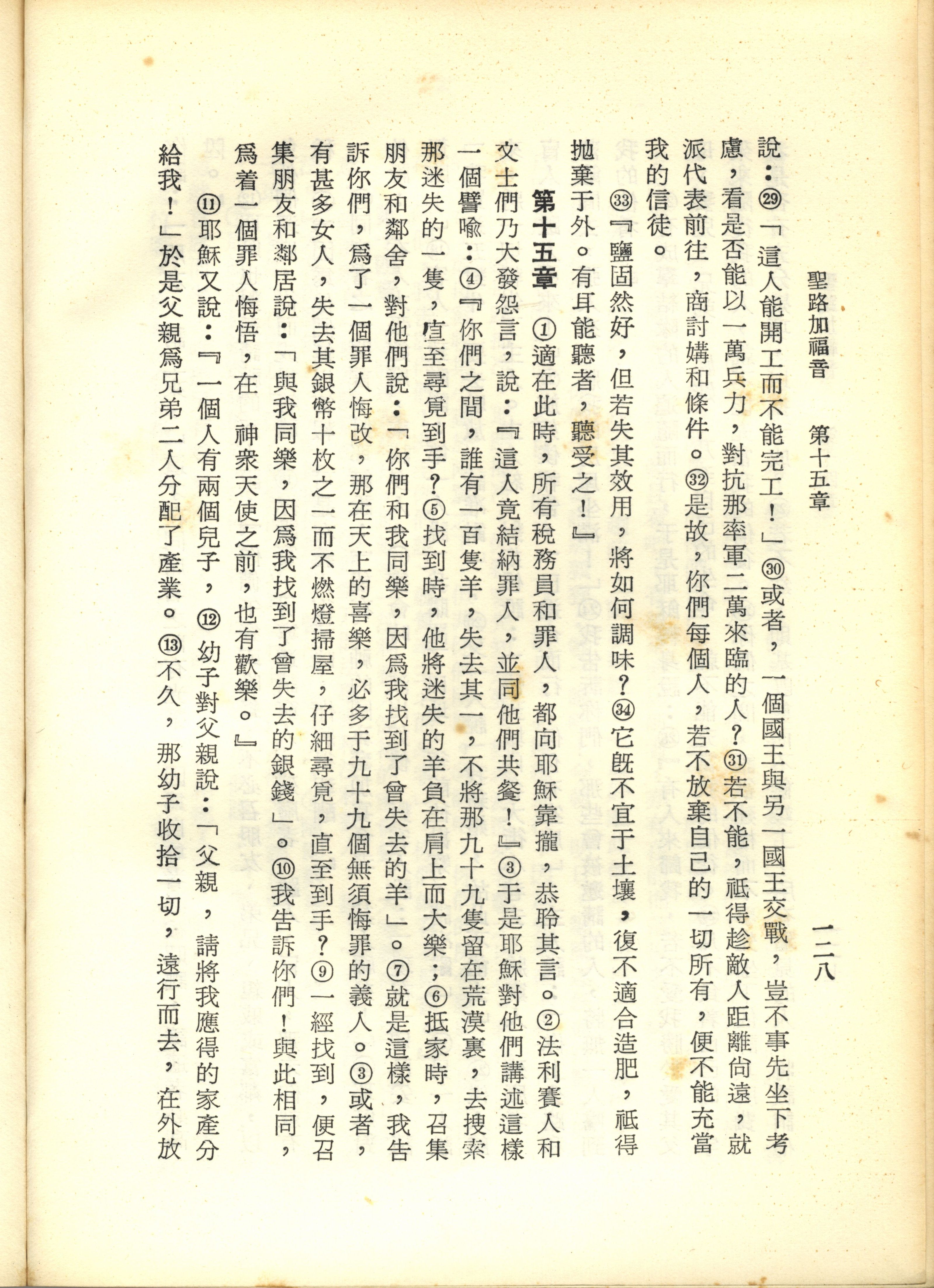1967年新譯新約全集 路加福音 14 章 29 節到 15 章 13 節
