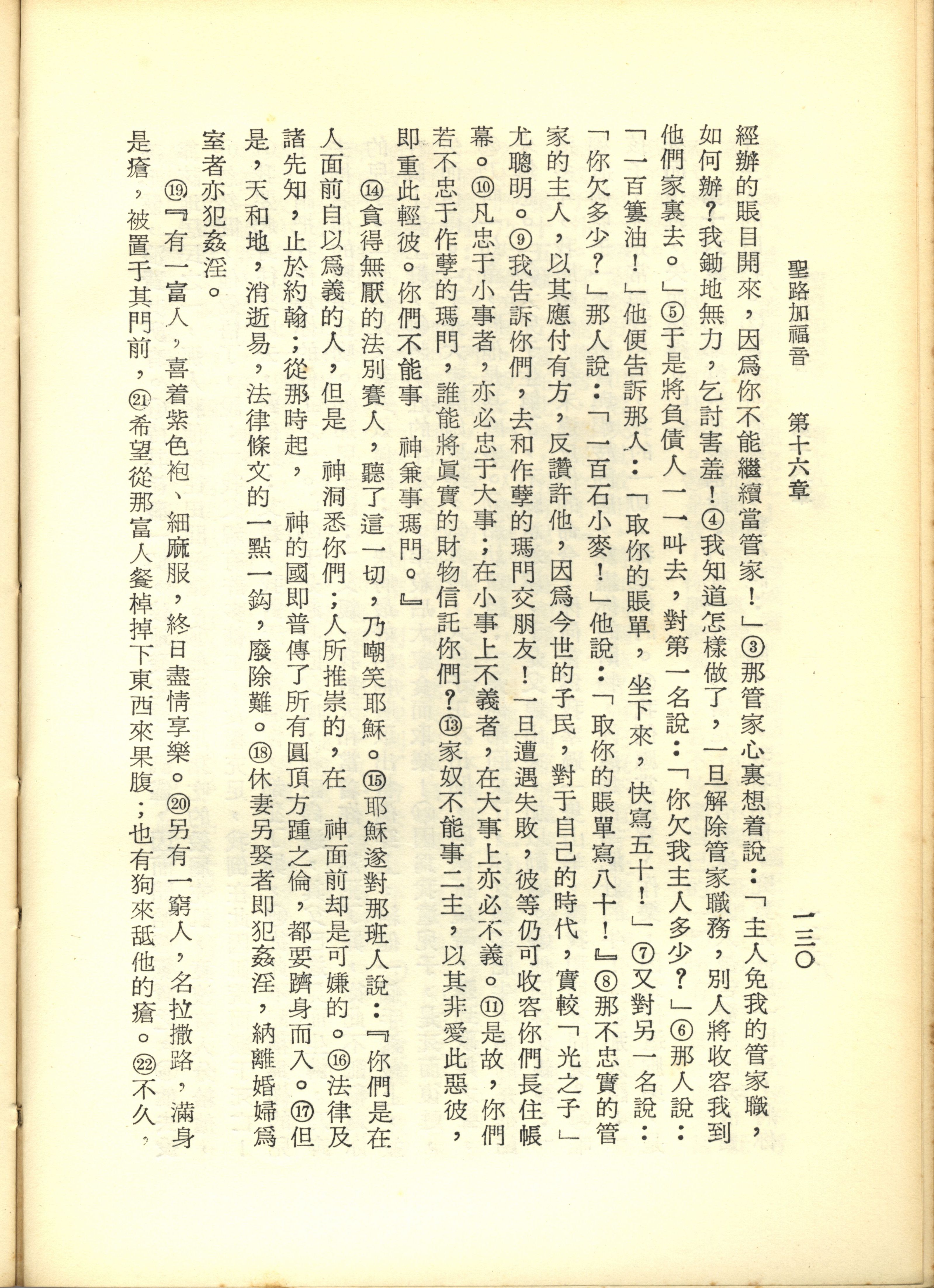 1967年新譯新約全集 路加福音 16 章 3 節到 16 章 22 節