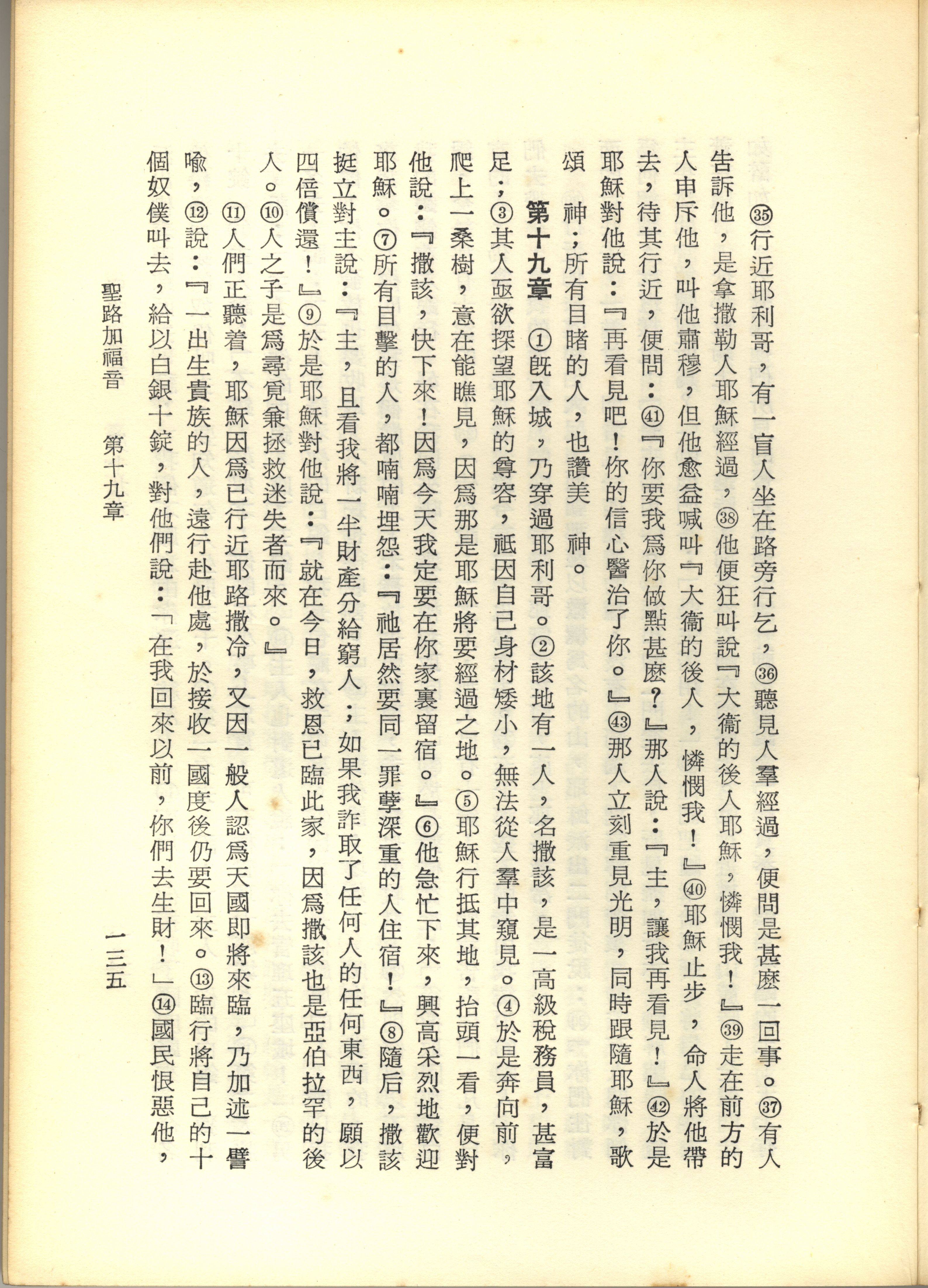 1967年新譯新約全集 路加福音 18 章 35 節到 19 章 14 節