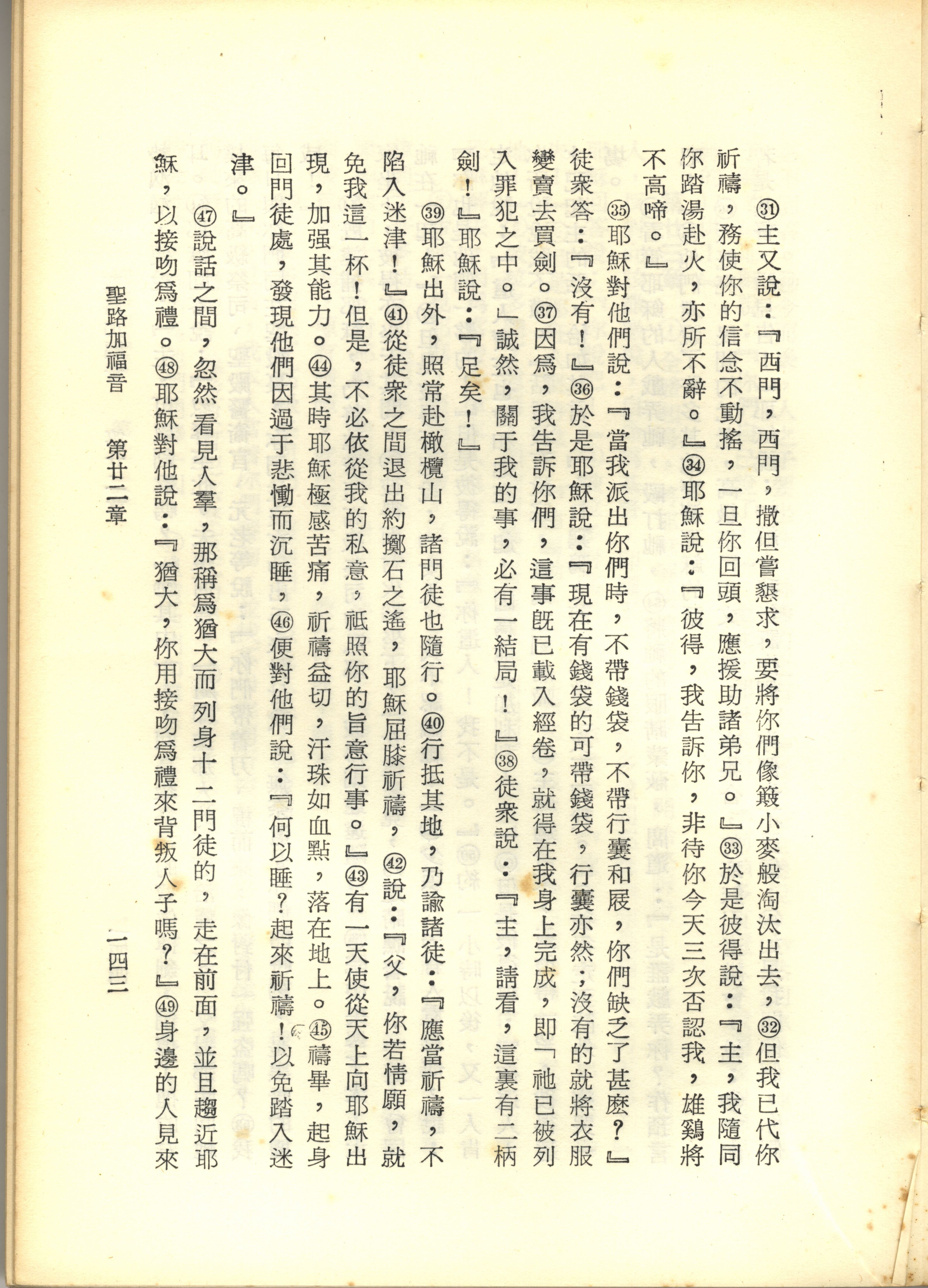 1967年新譯新約全集 路加福音 22 章 31 節到 22 章 49 節