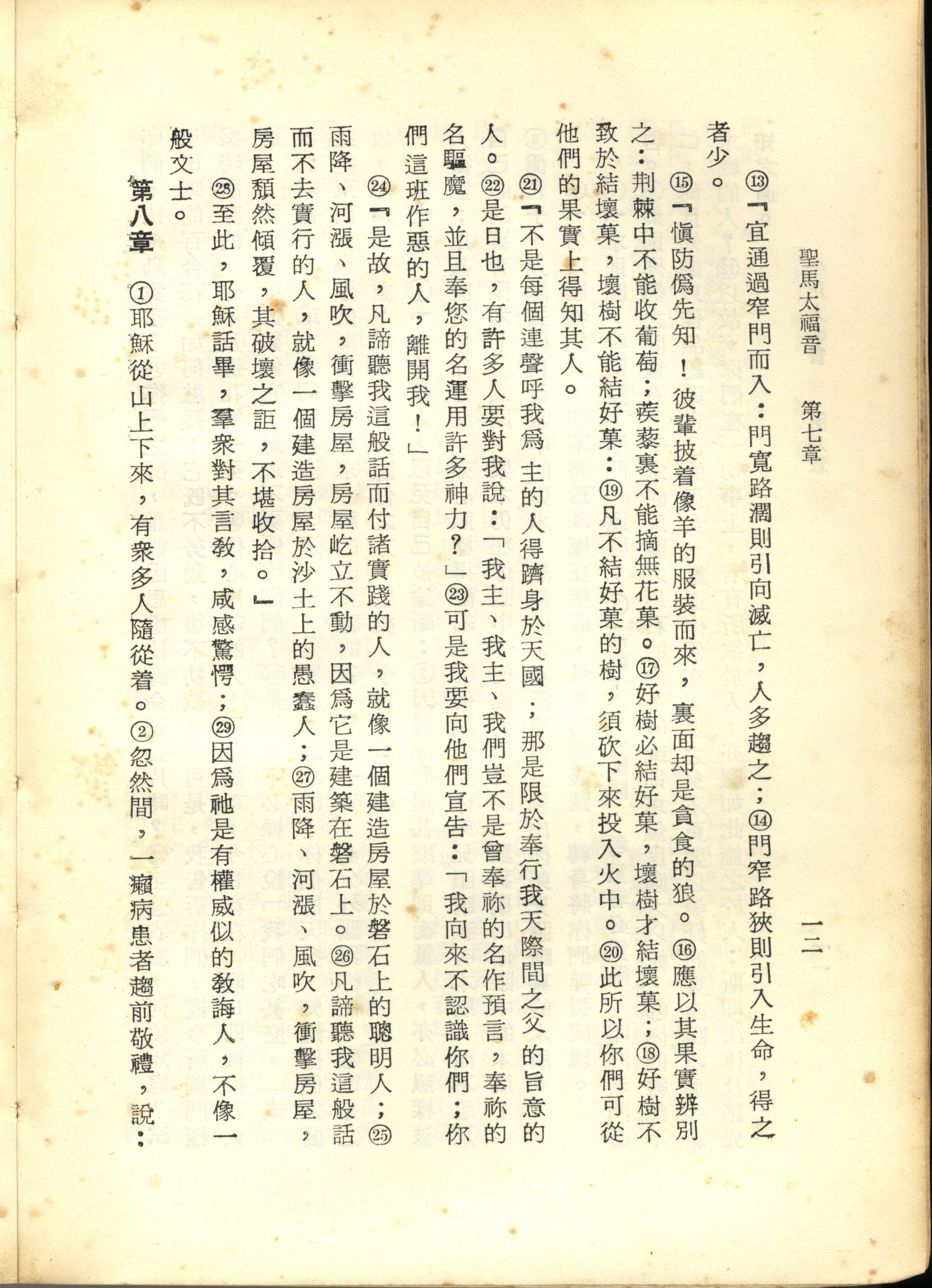 1967年新譯新約全集 馬太福音 7 章 13 節到 8 章 2 節