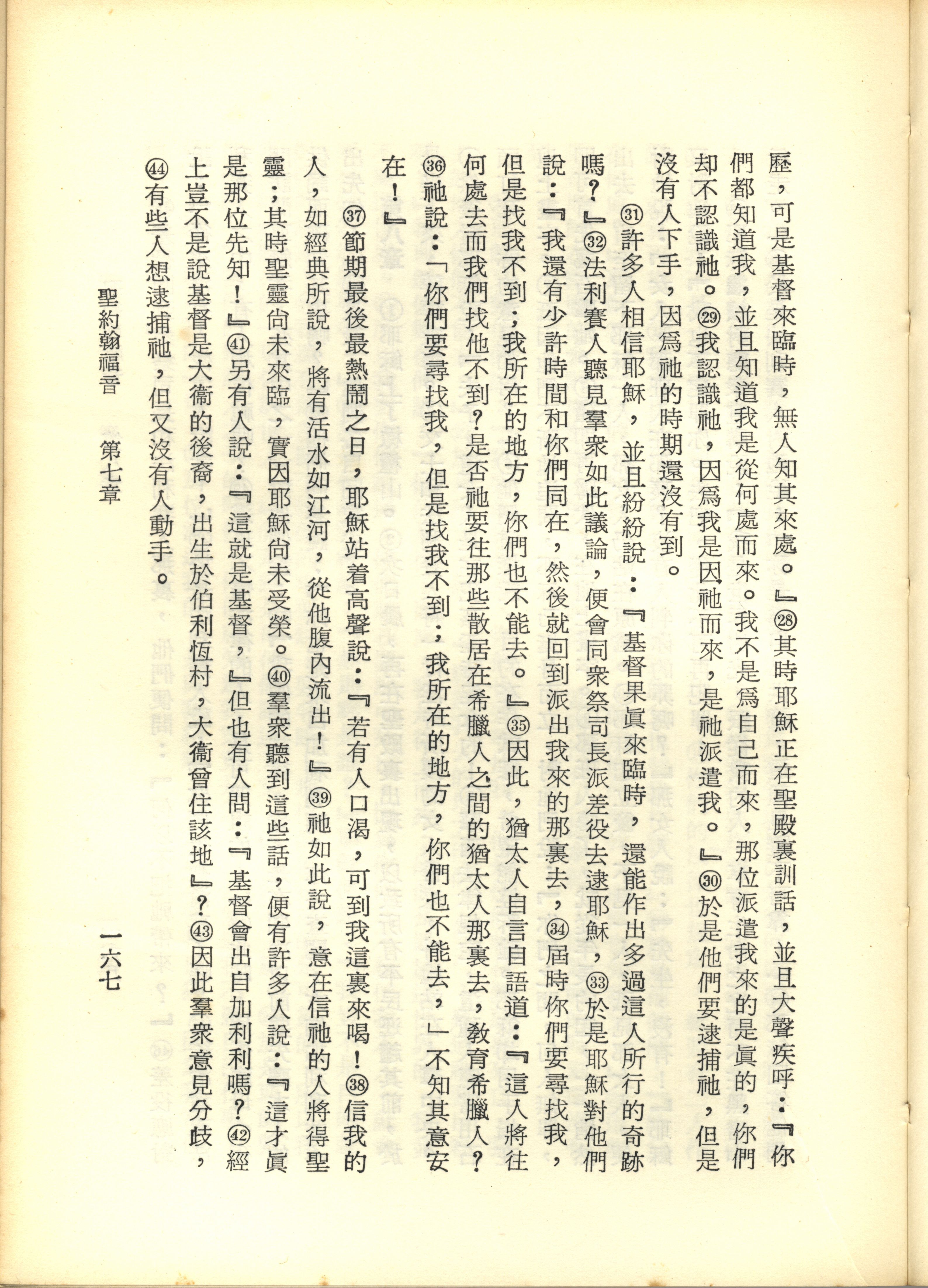 1967年新譯新約全集 約翰福音 7 章 28 節到 7 章 44 節