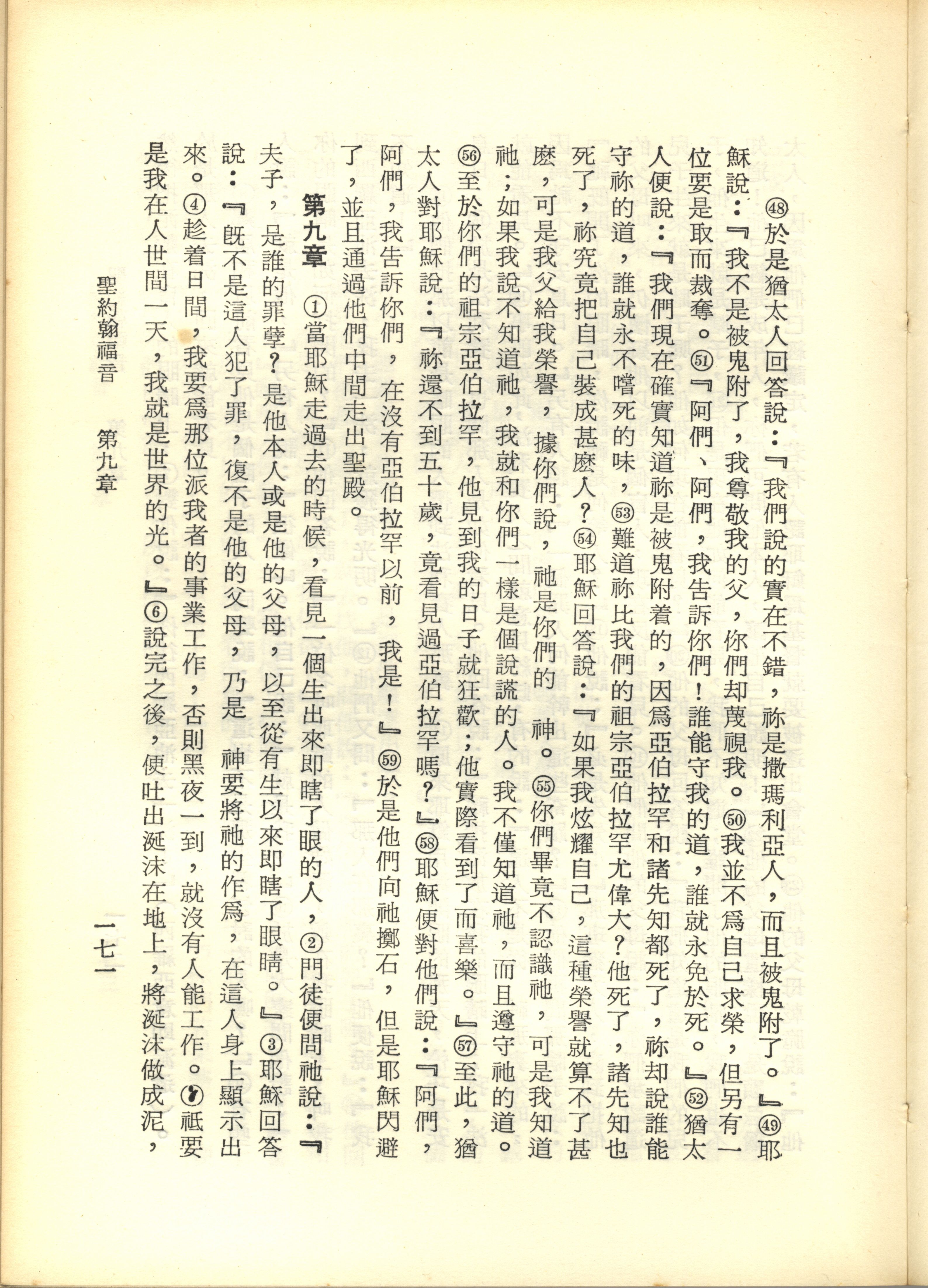 1967年新譯新約全集 約翰福音 8 章 48 節到 9 章 6 節