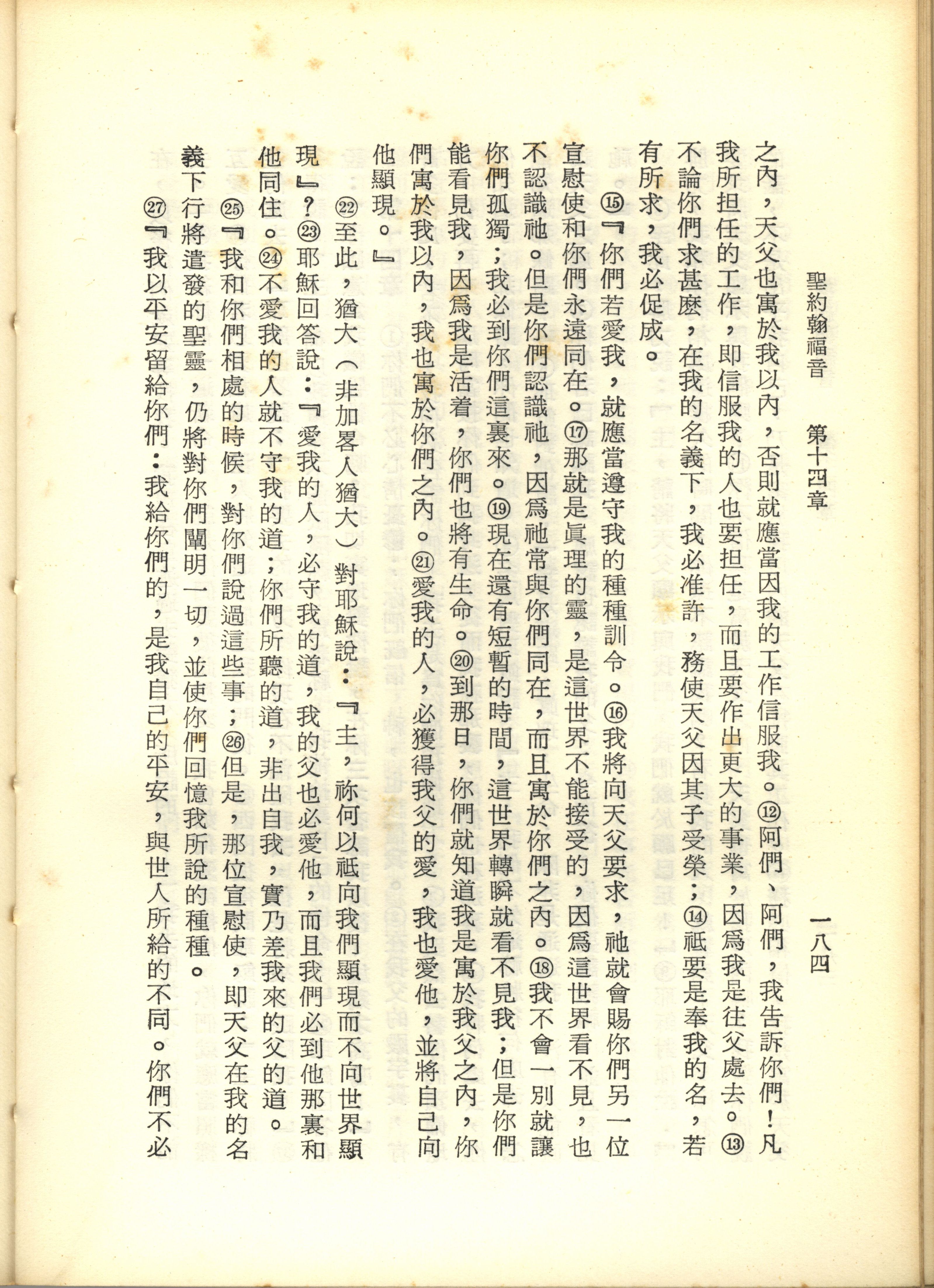 1967年新譯新約全集 約翰福音 14 章 12 節到 14 章 27 節