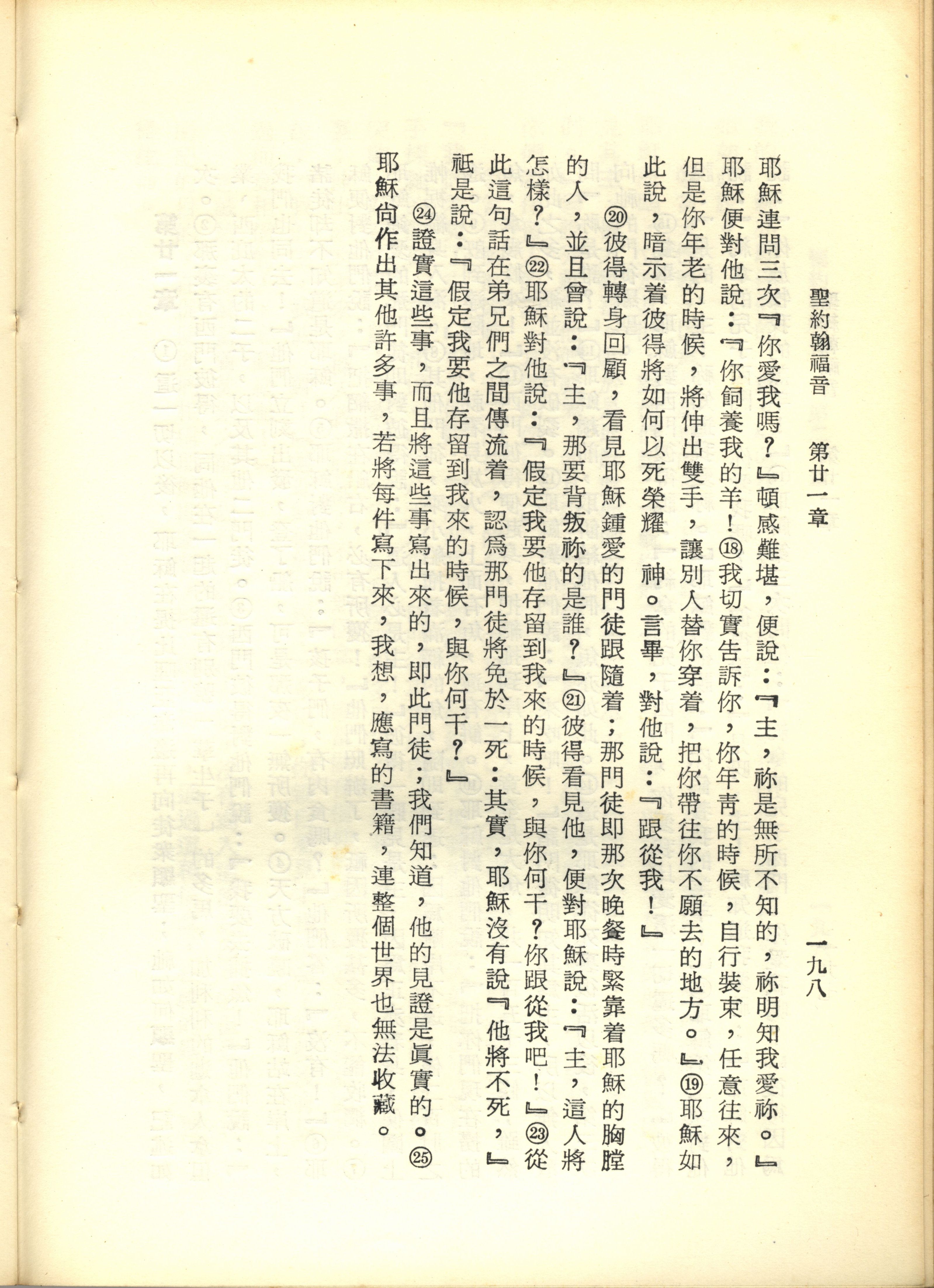 1967年新譯新約全集 約翰福音 21 章 18 節到 21 章 25 節