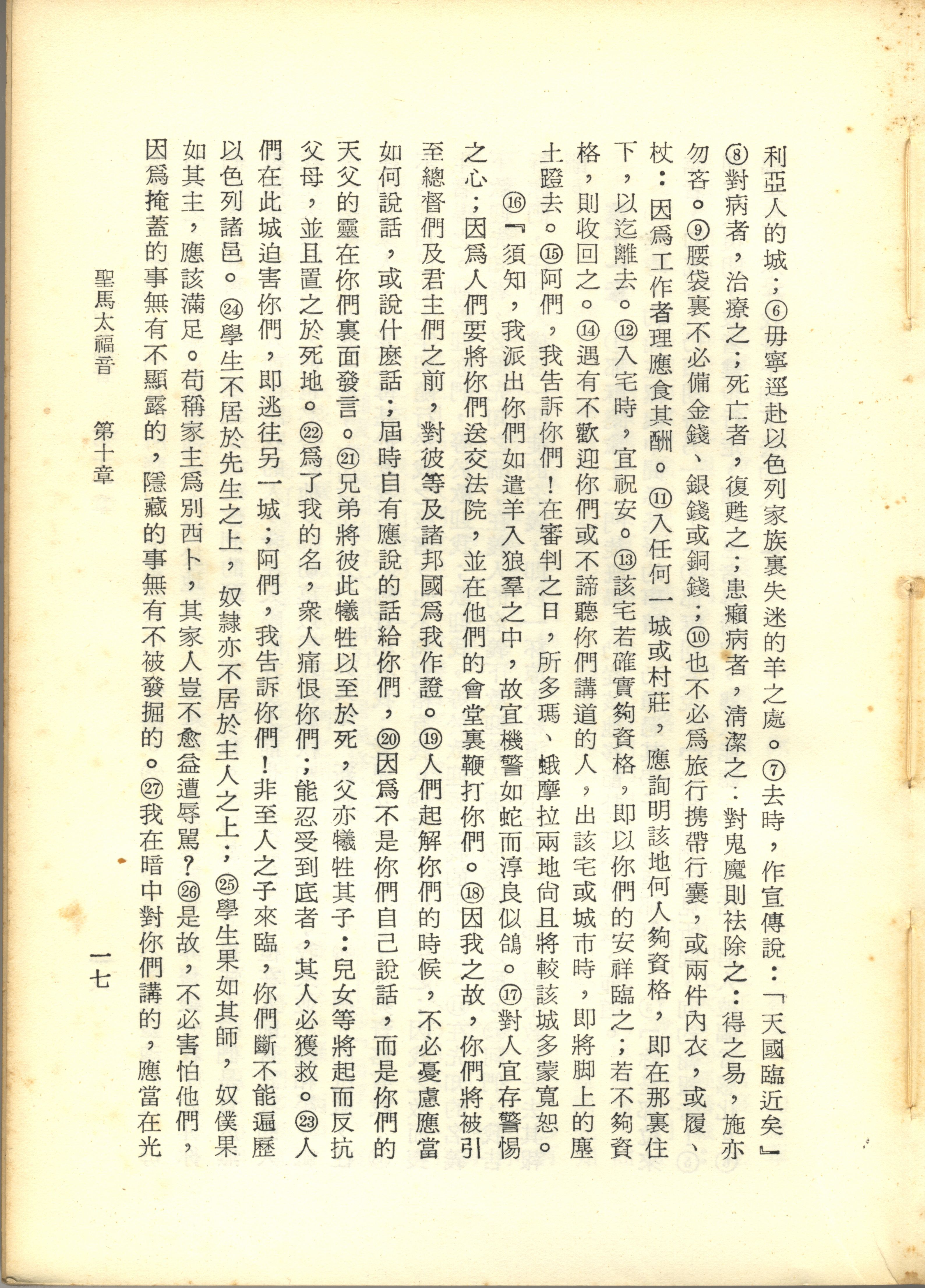 1967年新譯新約全集 馬太福音 10 章 6 節到 10 章 27 節