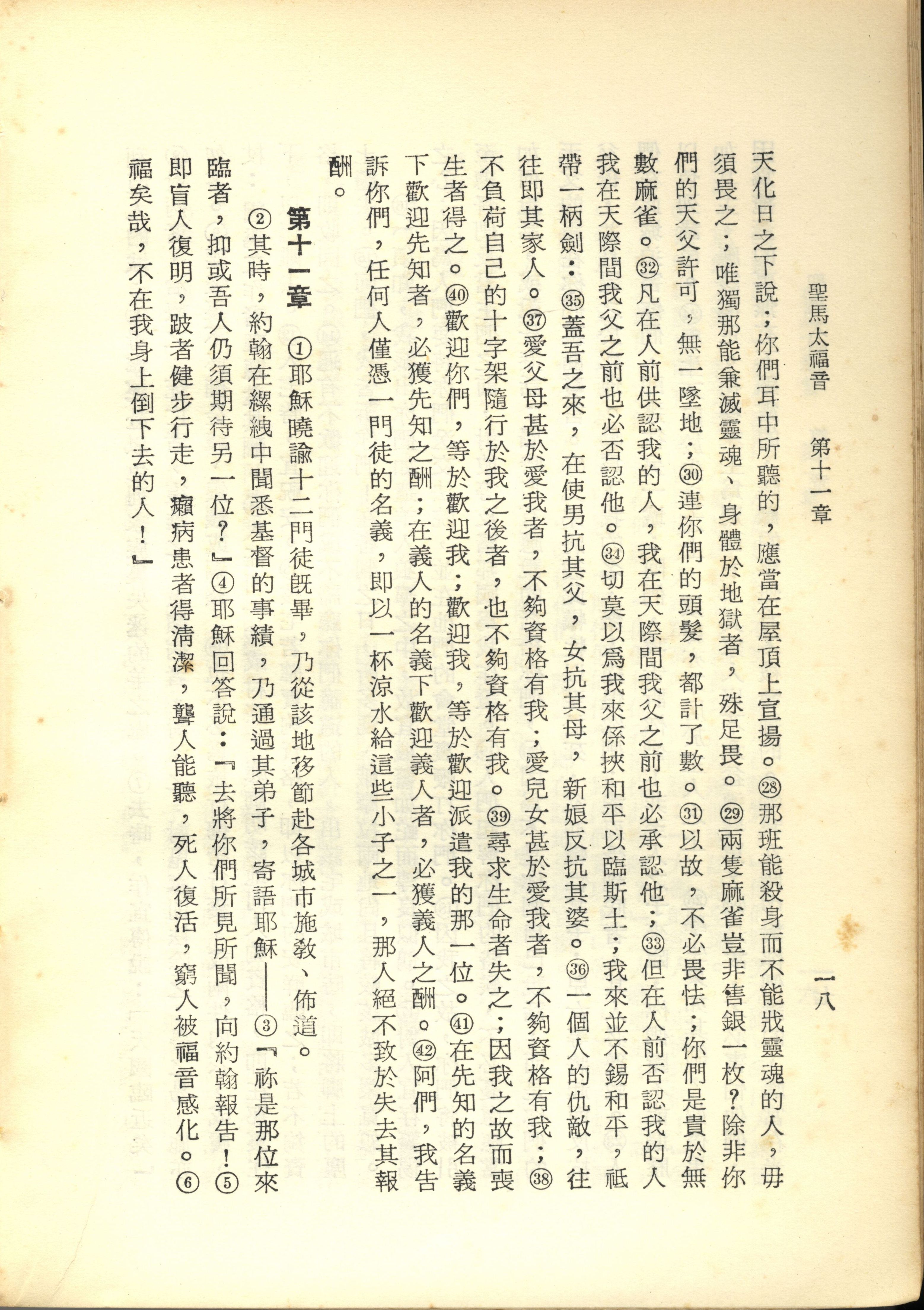 1967年新譯新約全集 馬太福音 10 章 28 節到 11 章 6 節