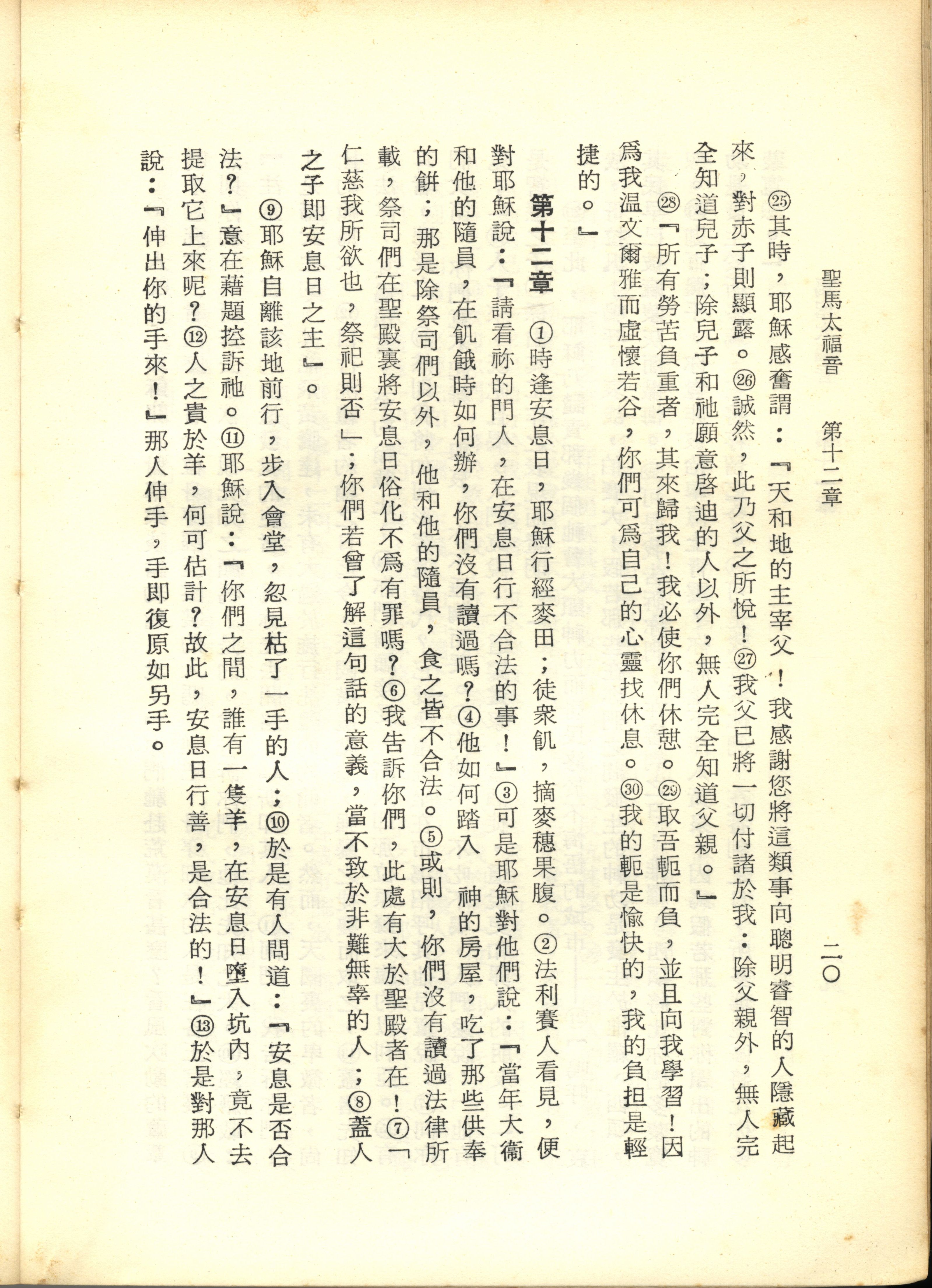 1967年新譯新約全集 馬太福音 11 章 25 節到 12 章 13 節