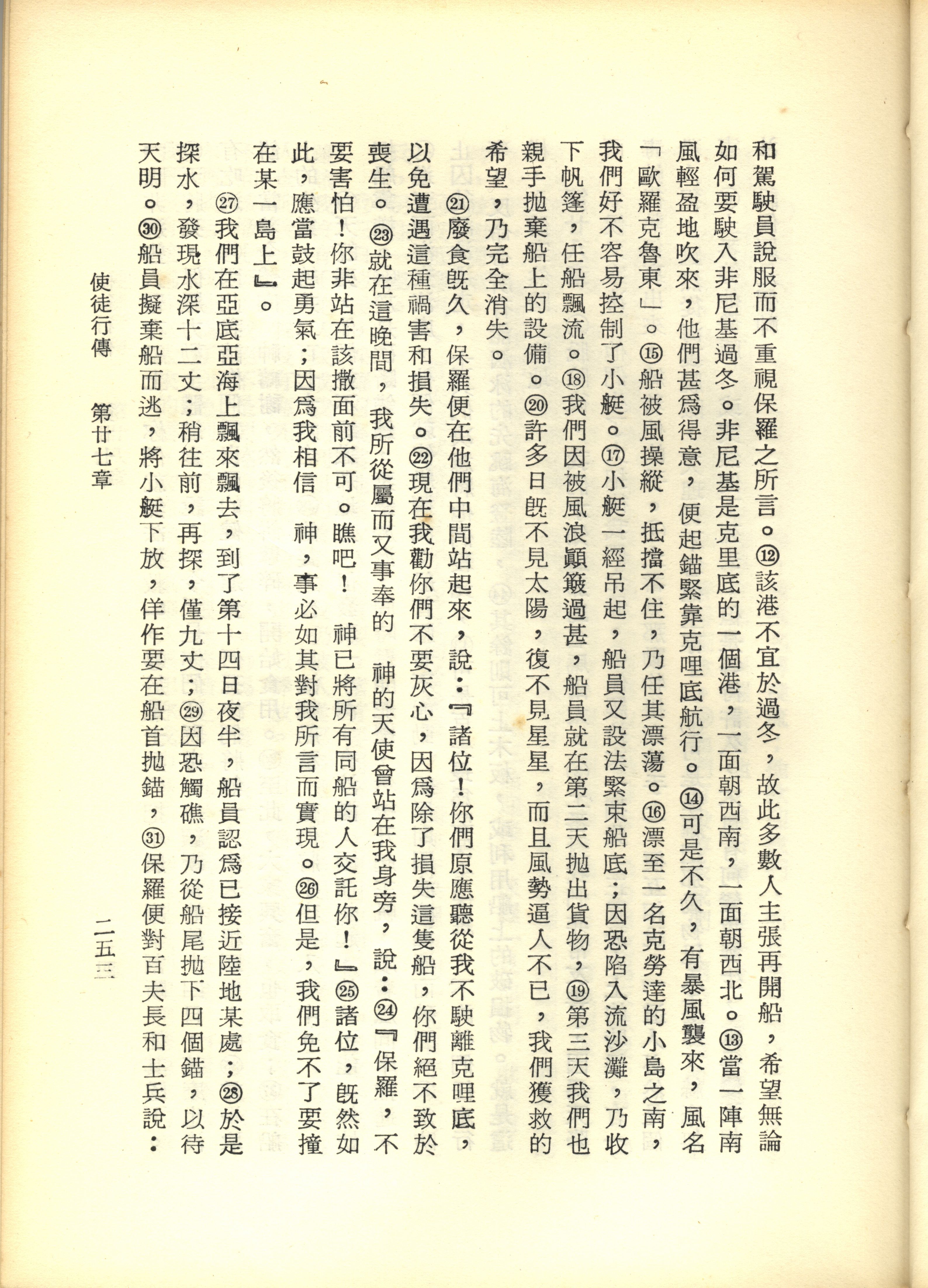 1967年新譯新約全集 使徒行傳 27 章 12 節到 27 章 31 節
