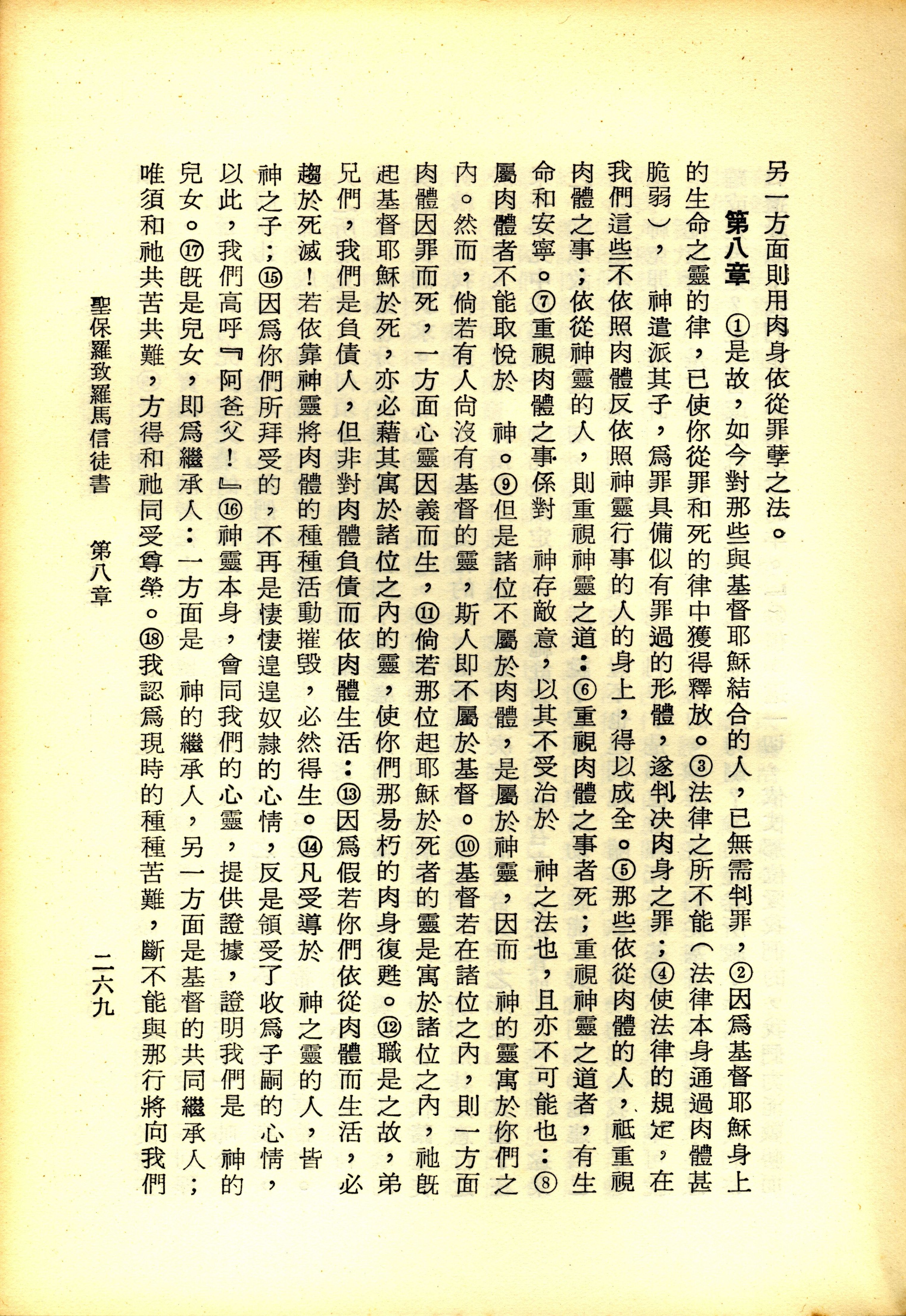 1967年新譯新約全集 羅馬書 8 章 1 節到 8 章 18 節