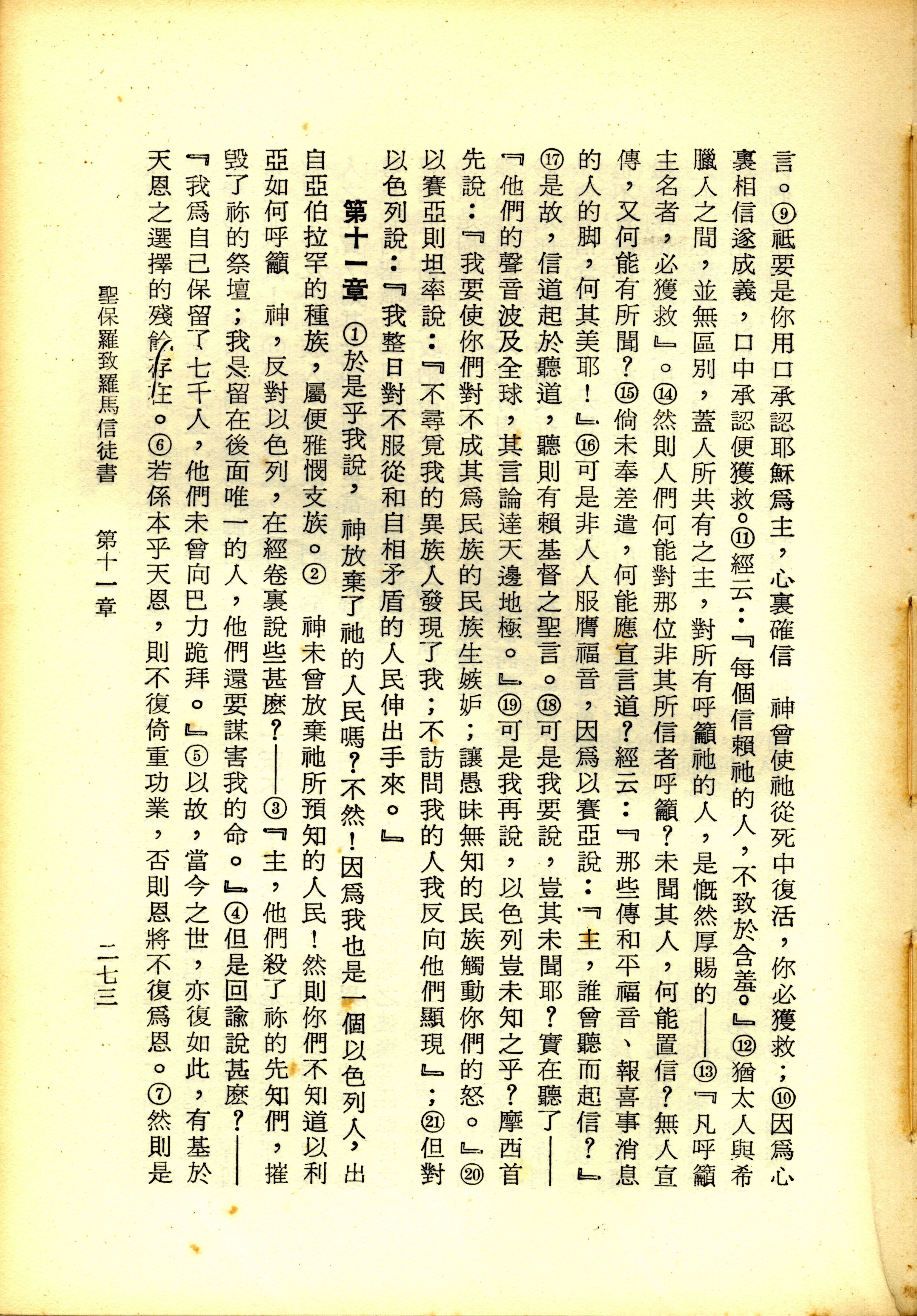 1967年新譯新約全集 羅馬書 10 章 9 節到 11 章 7 節