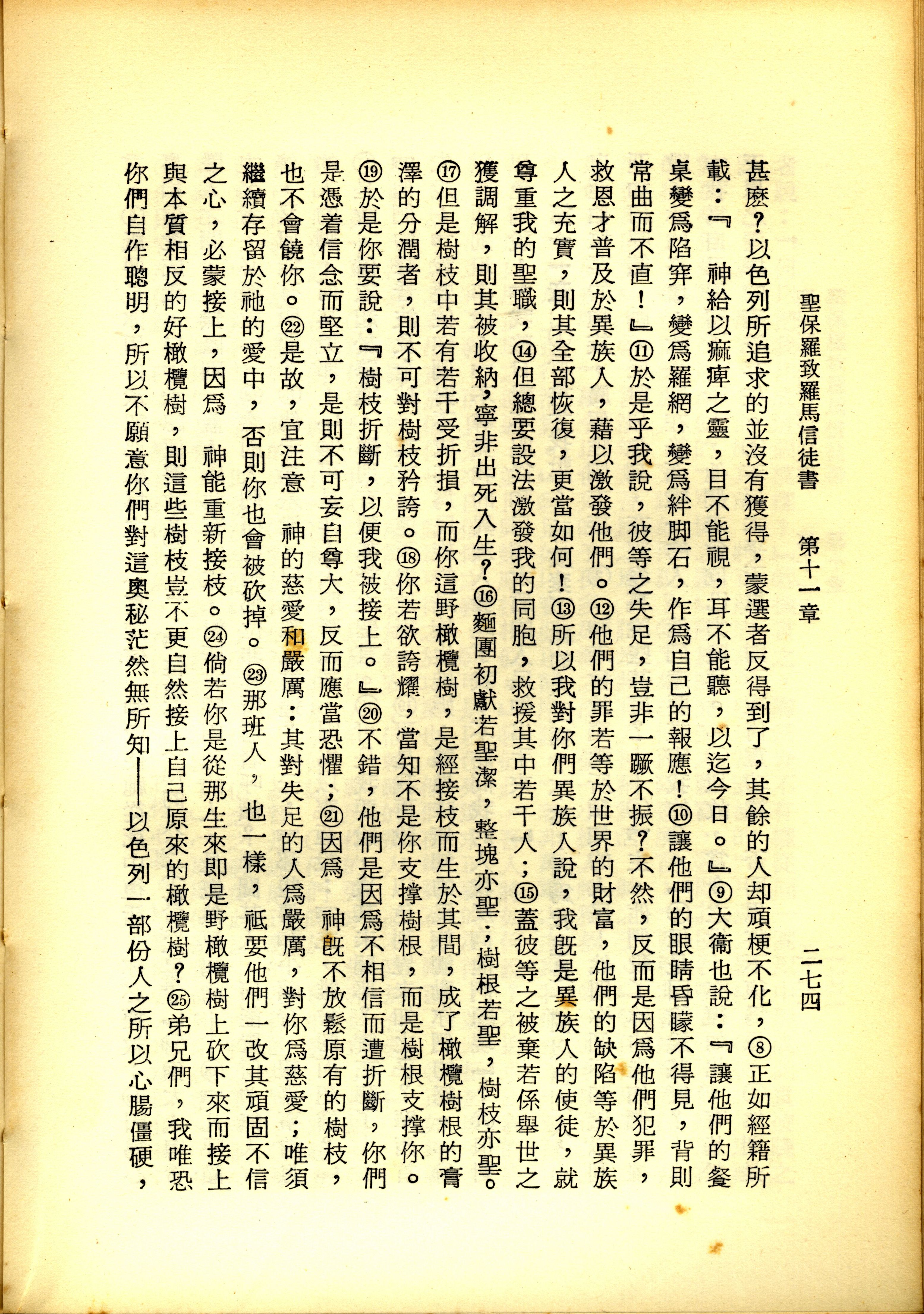 1967年新譯新約全集 羅馬書 11 章 8 節到 11 章 25 節