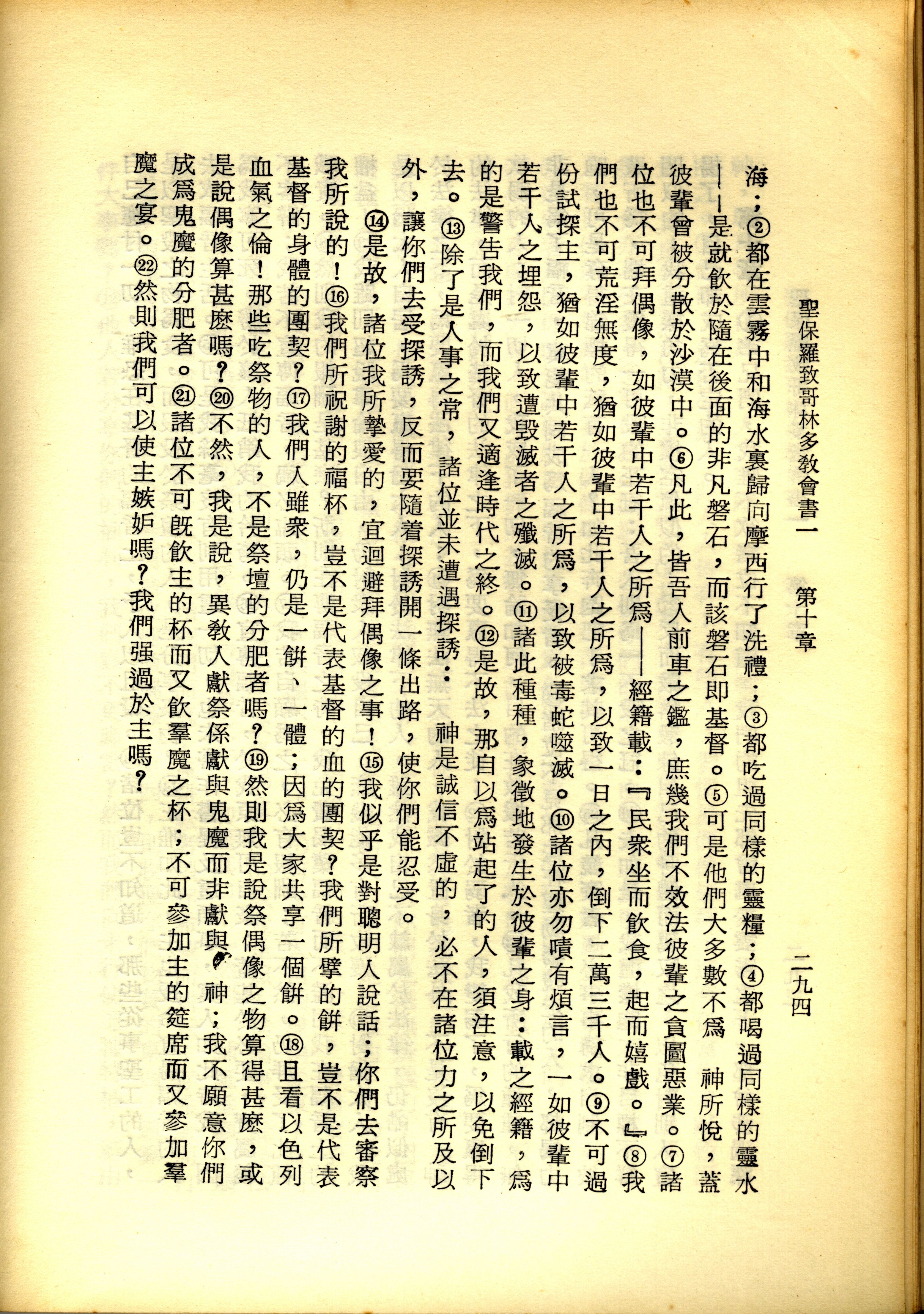 1967年新譯新約全集 哥林多前書 10 章 2 節到 10 章 22 節