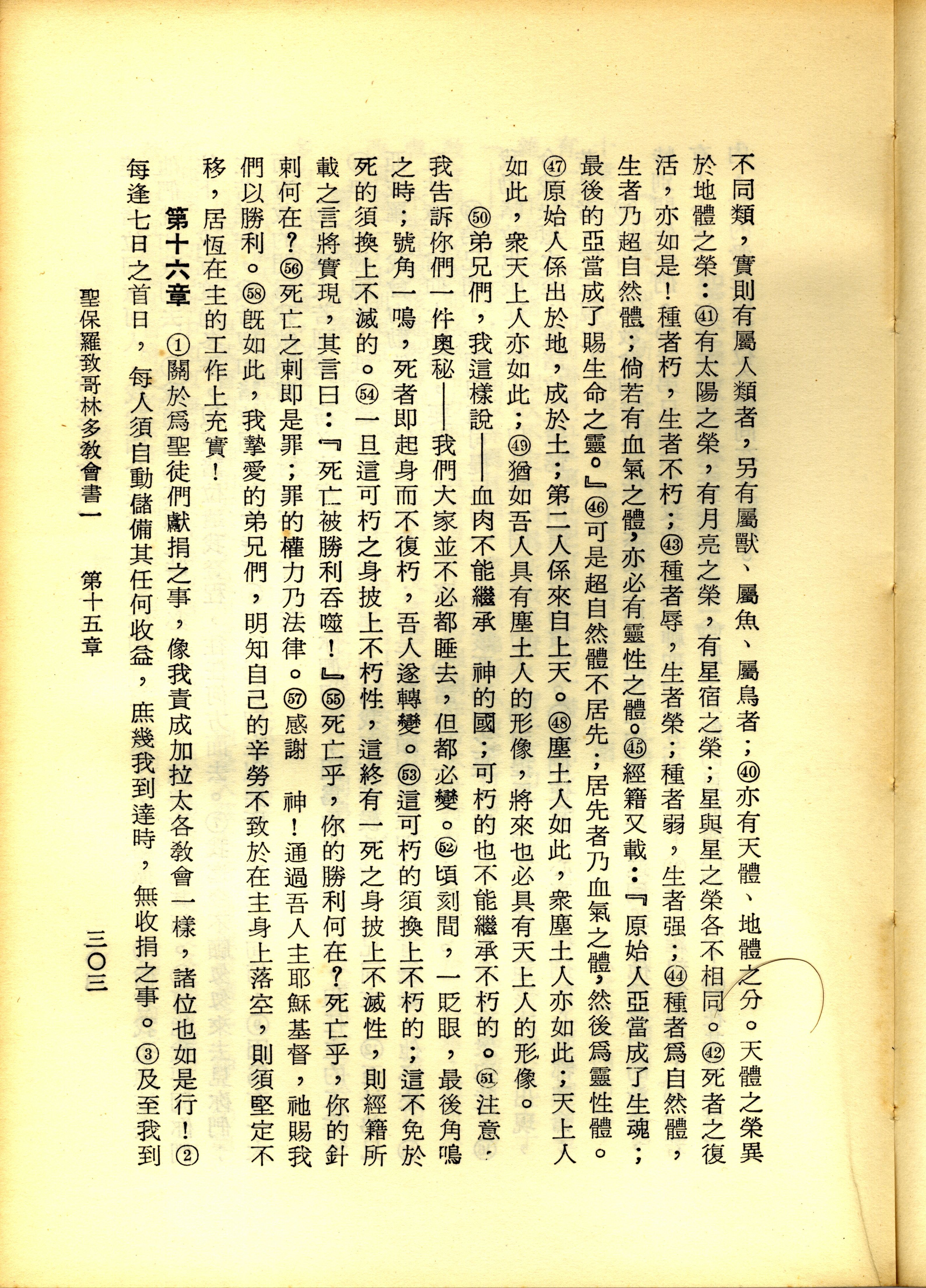 1967年新譯新約全集 哥林多前書 15 章 40 節到 16 章 3 節