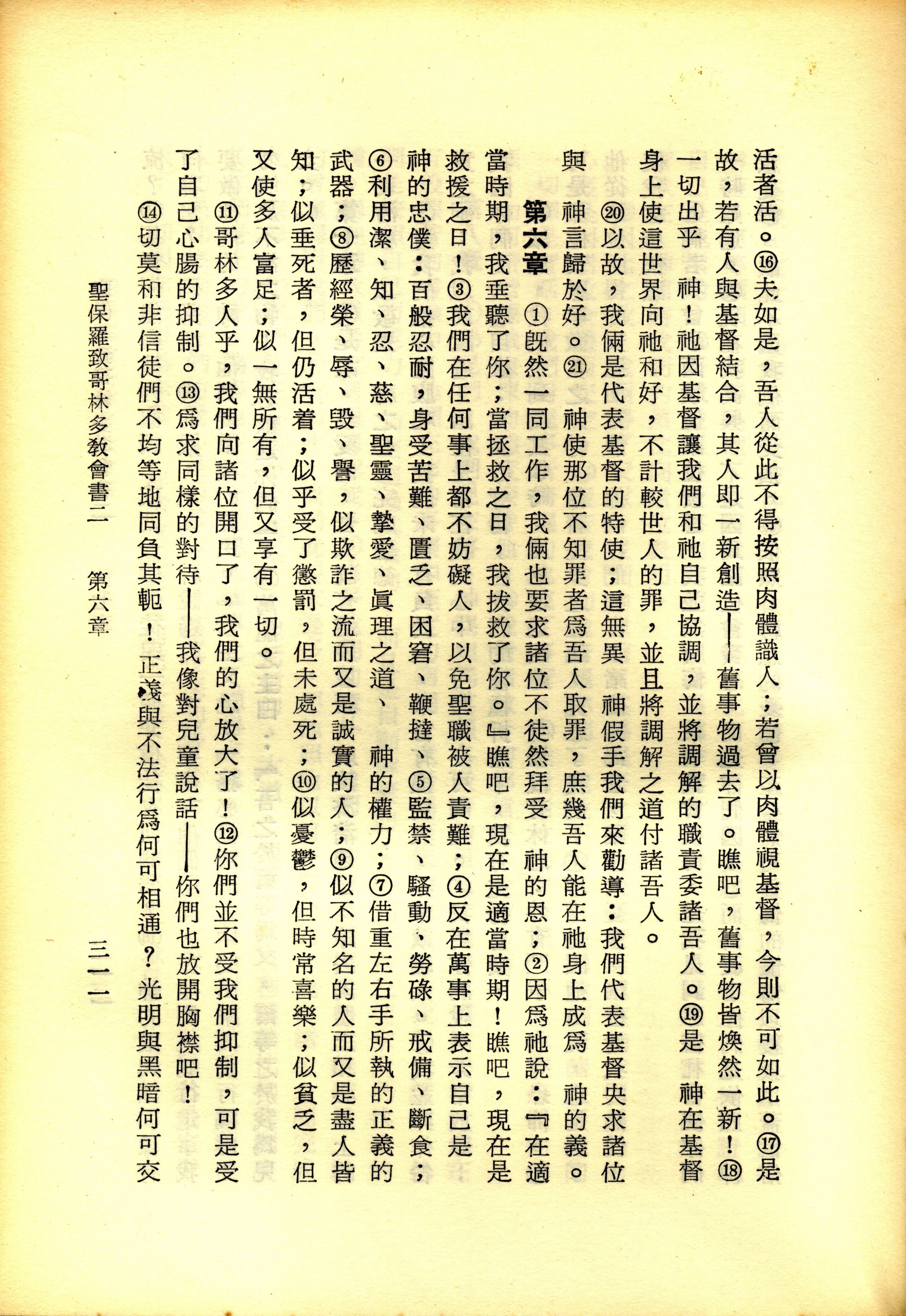 1967年新譯新約全集 哥林多後書 5 章 16 節到 6 章 14 節