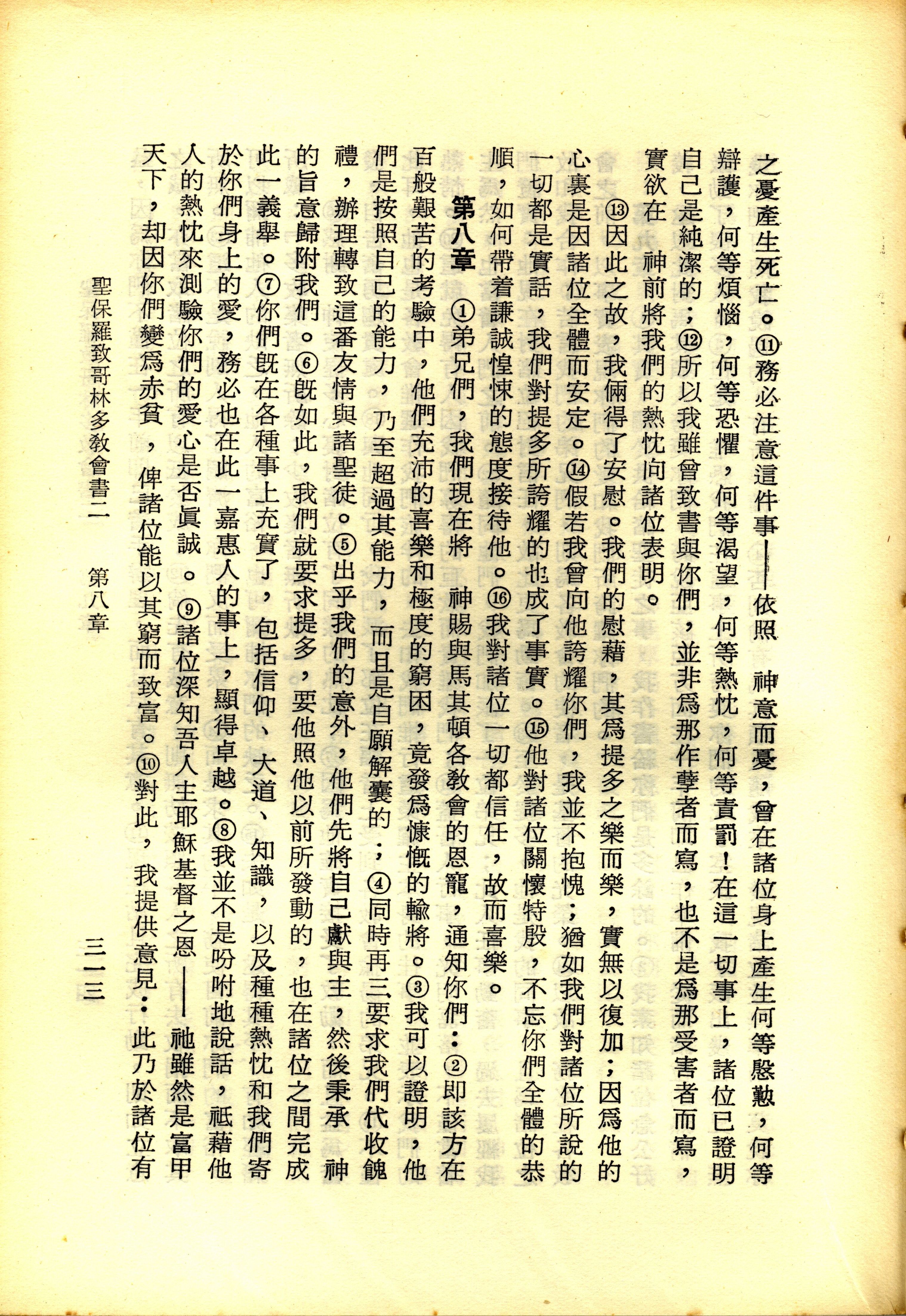 1967年新譯新約全集 哥林多後書 7 章 11 節到 8 章 10 節