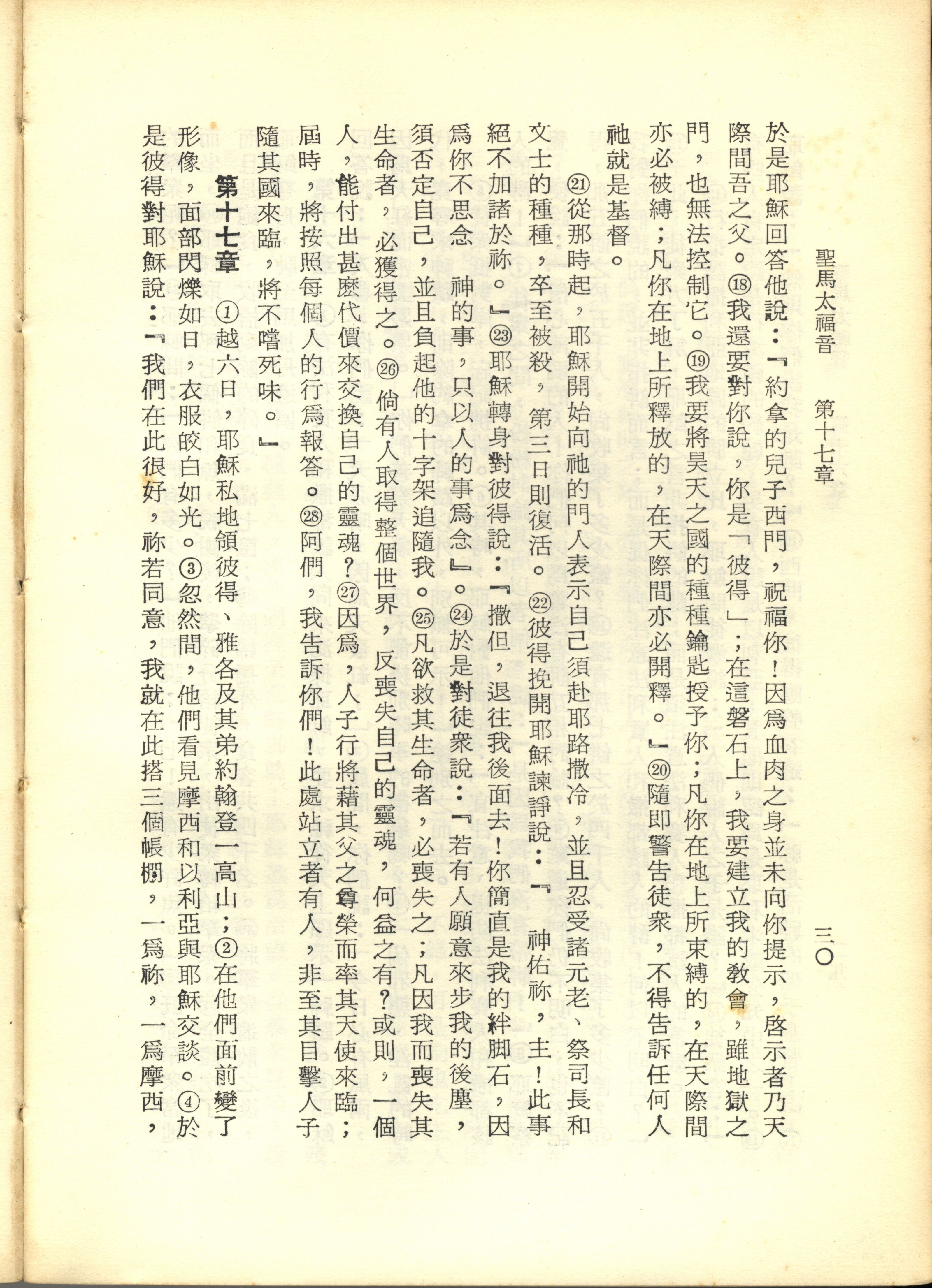 1967年新譯新約全集 馬太福音 16 章 18 節到 17 章 4 節