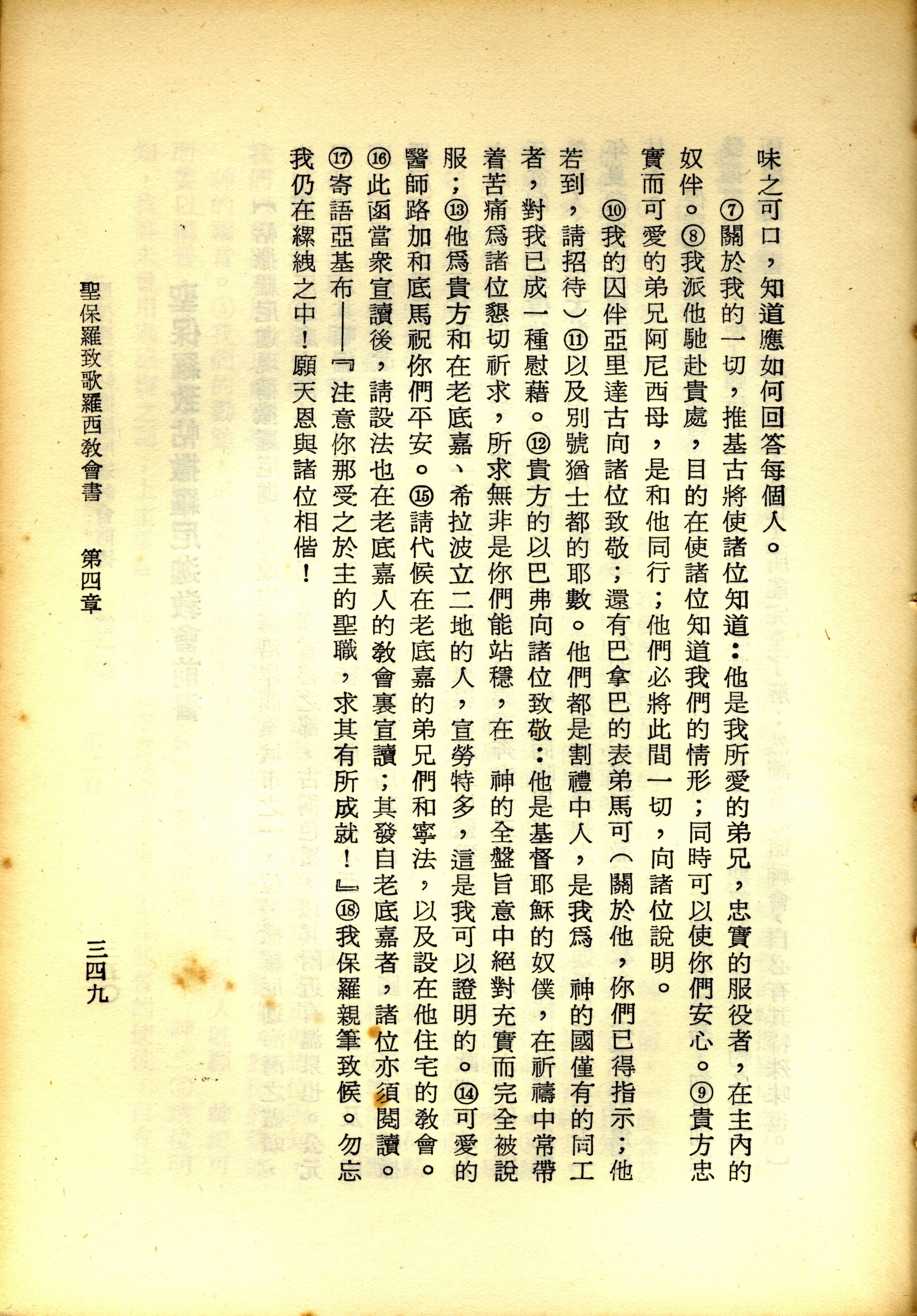 1967年新譯新約全集 歌羅西書 4 章 7 節到 4 章 18 節