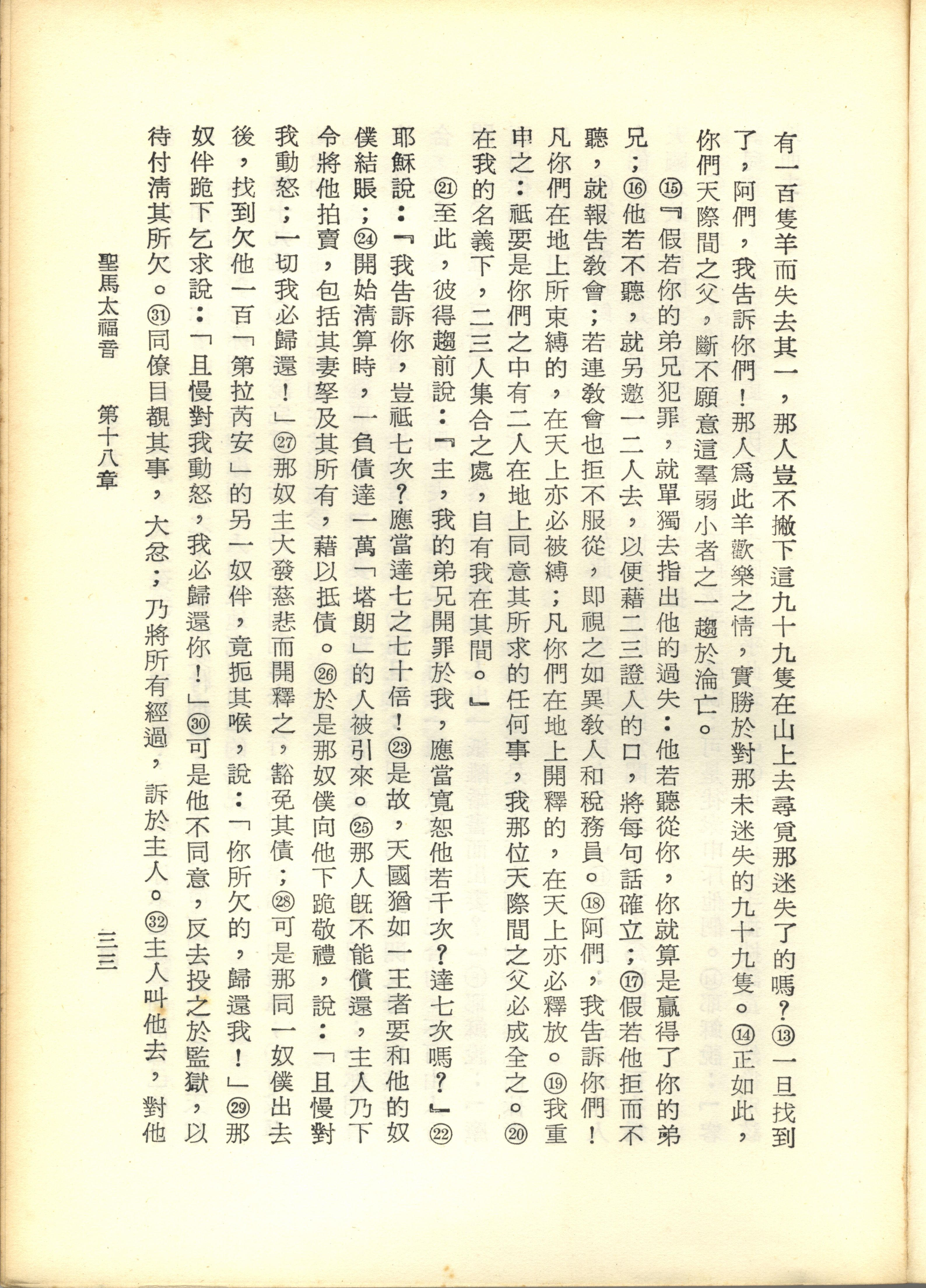 1967年新譯新約全集 馬太福音 18 章 13 節到 18 章 32 節