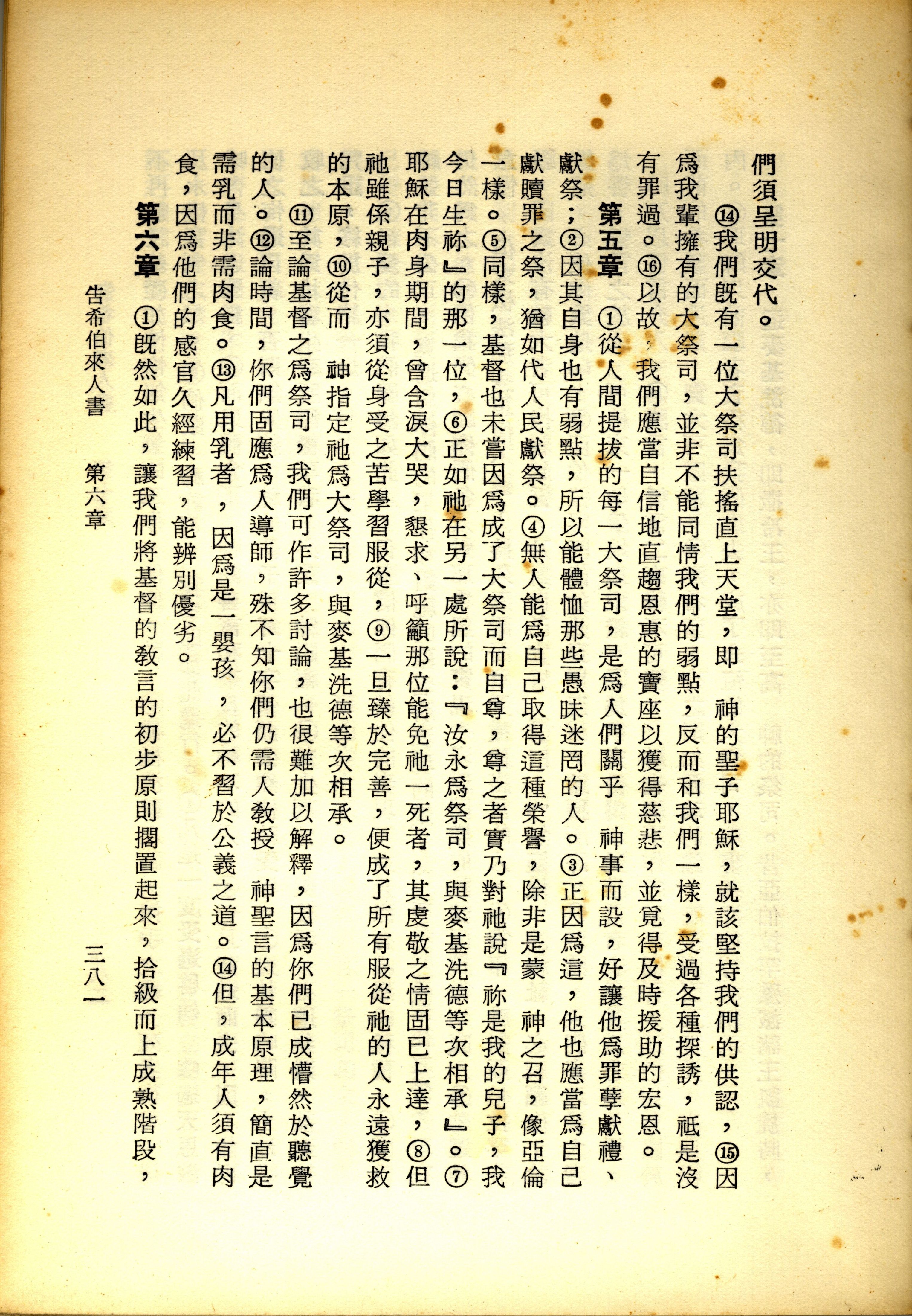 1967年新譯新約全集 希伯來書 4 章 14 節到 6 章 1 節
