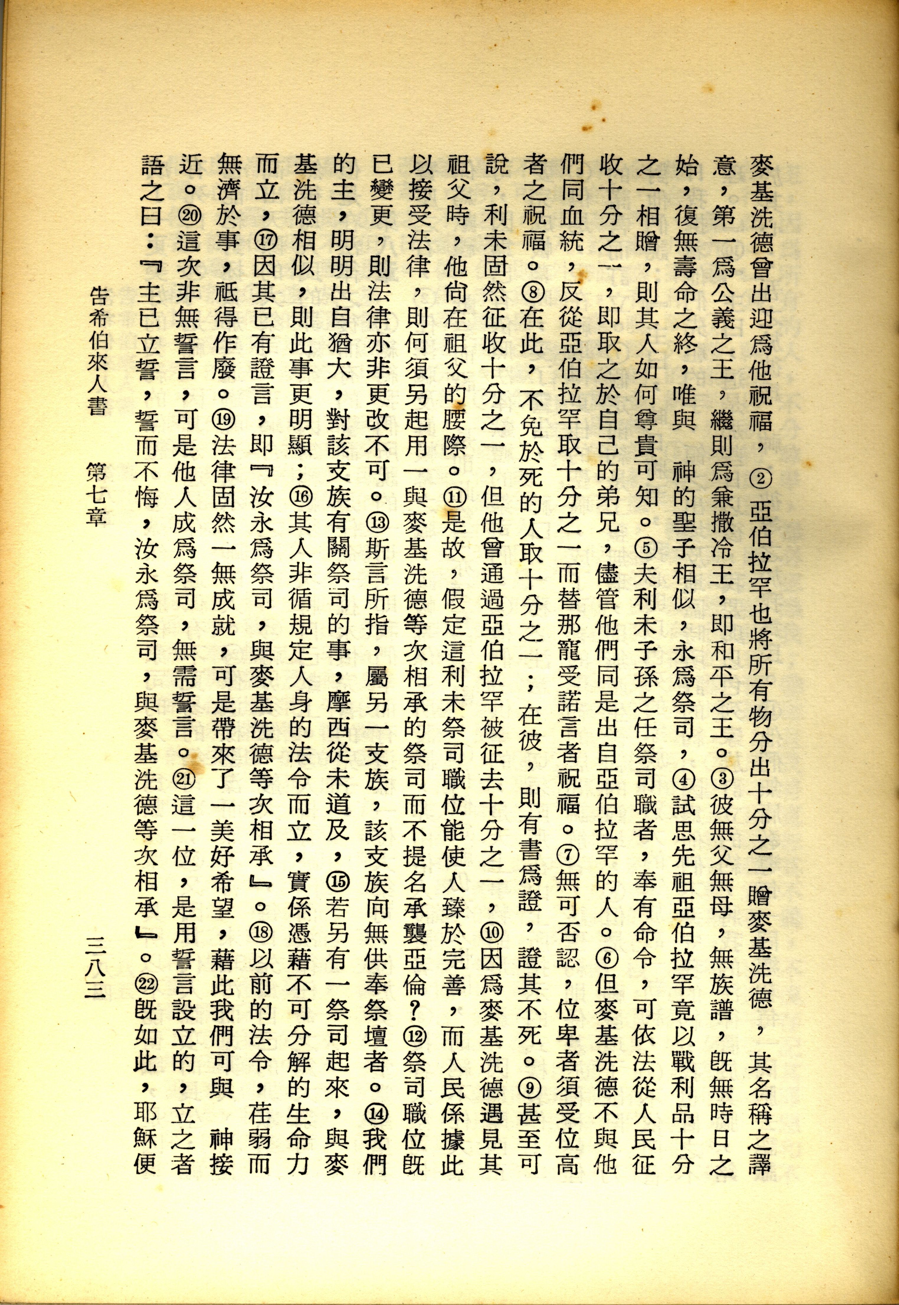 1967年新譯新約全集 希伯來書 7 章 2 節到 7 章 22 節