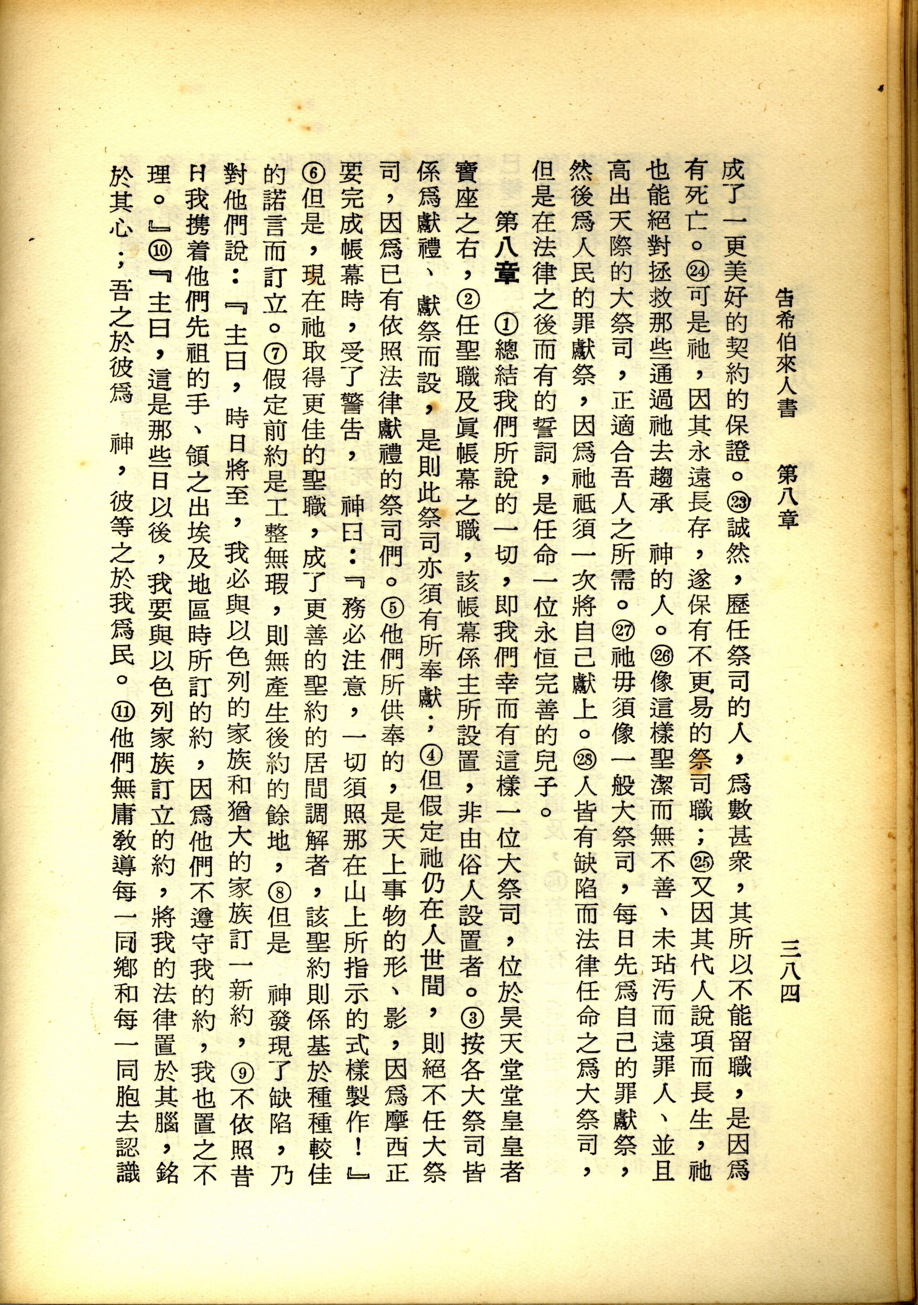 1967年新譯新約全集 希伯來書 7 章 23 節到 8 章 11 節