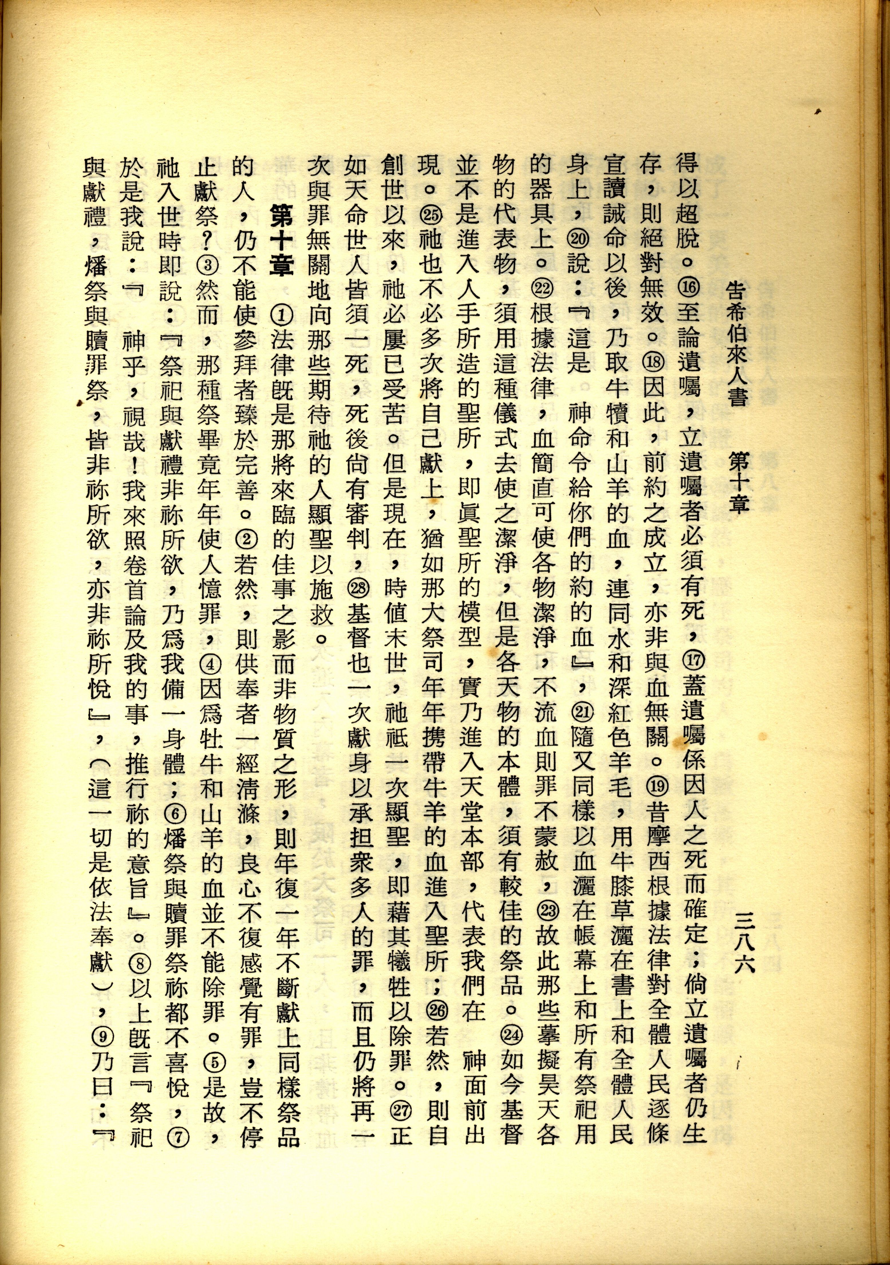 1967年新譯新約全集 希伯來書 9 章 16 節到 10 章 9 節