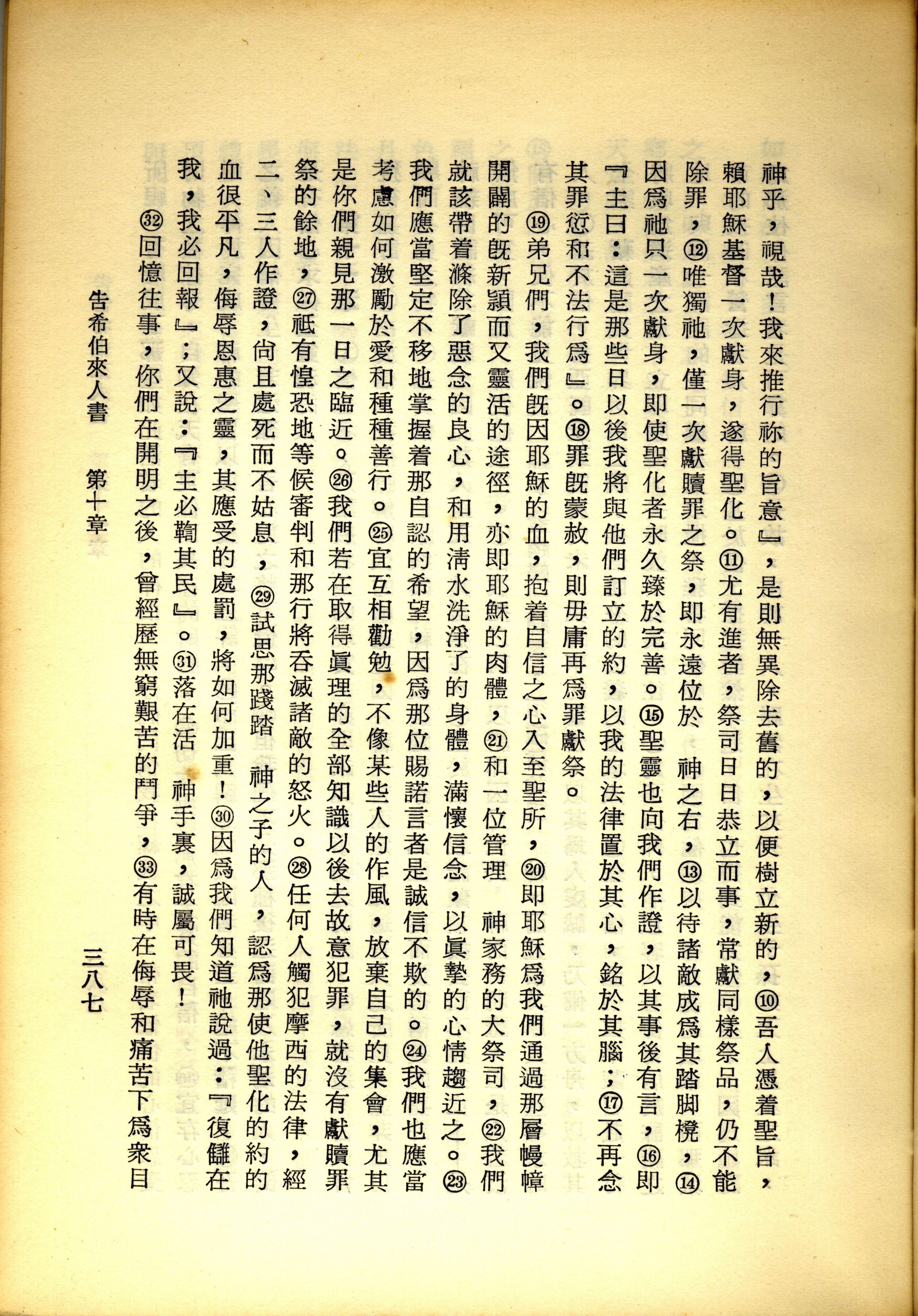 1967年新譯新約全集 希伯來書 10 章 10 節到 10 章 33 節