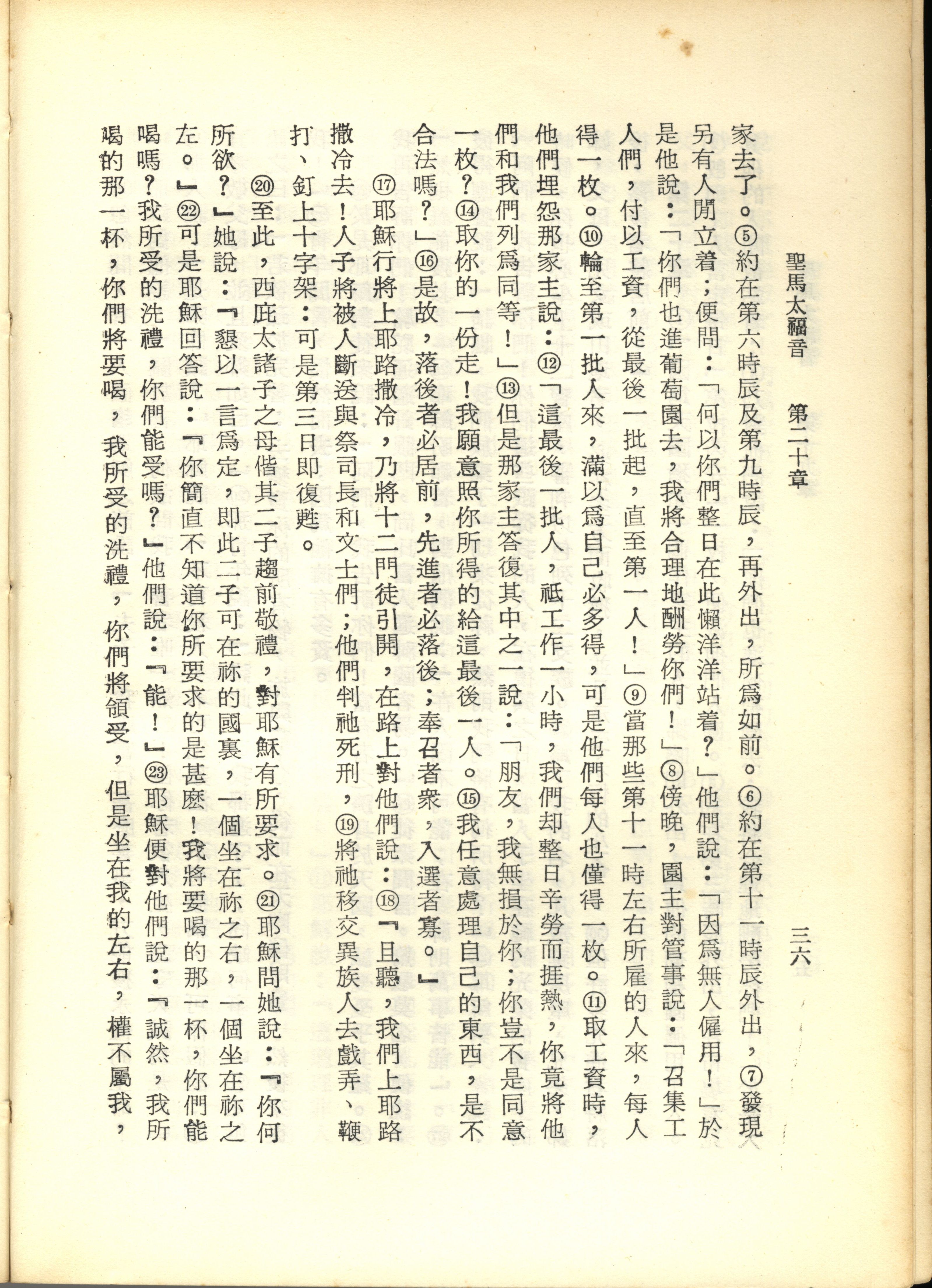 1967年新譯新約全集 馬太福音 20 章 5 節到 20 章 23 節