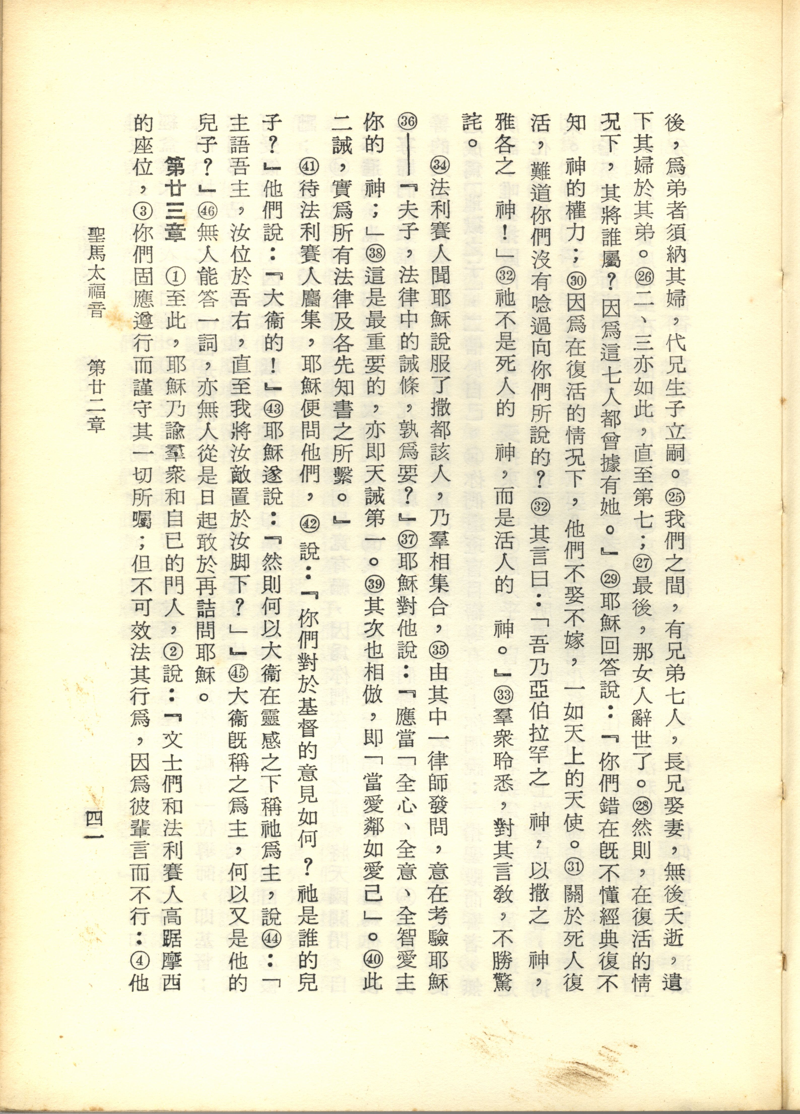 1967年新譯新約全集 馬太福音 22 章 25 節到 23 章 4 節