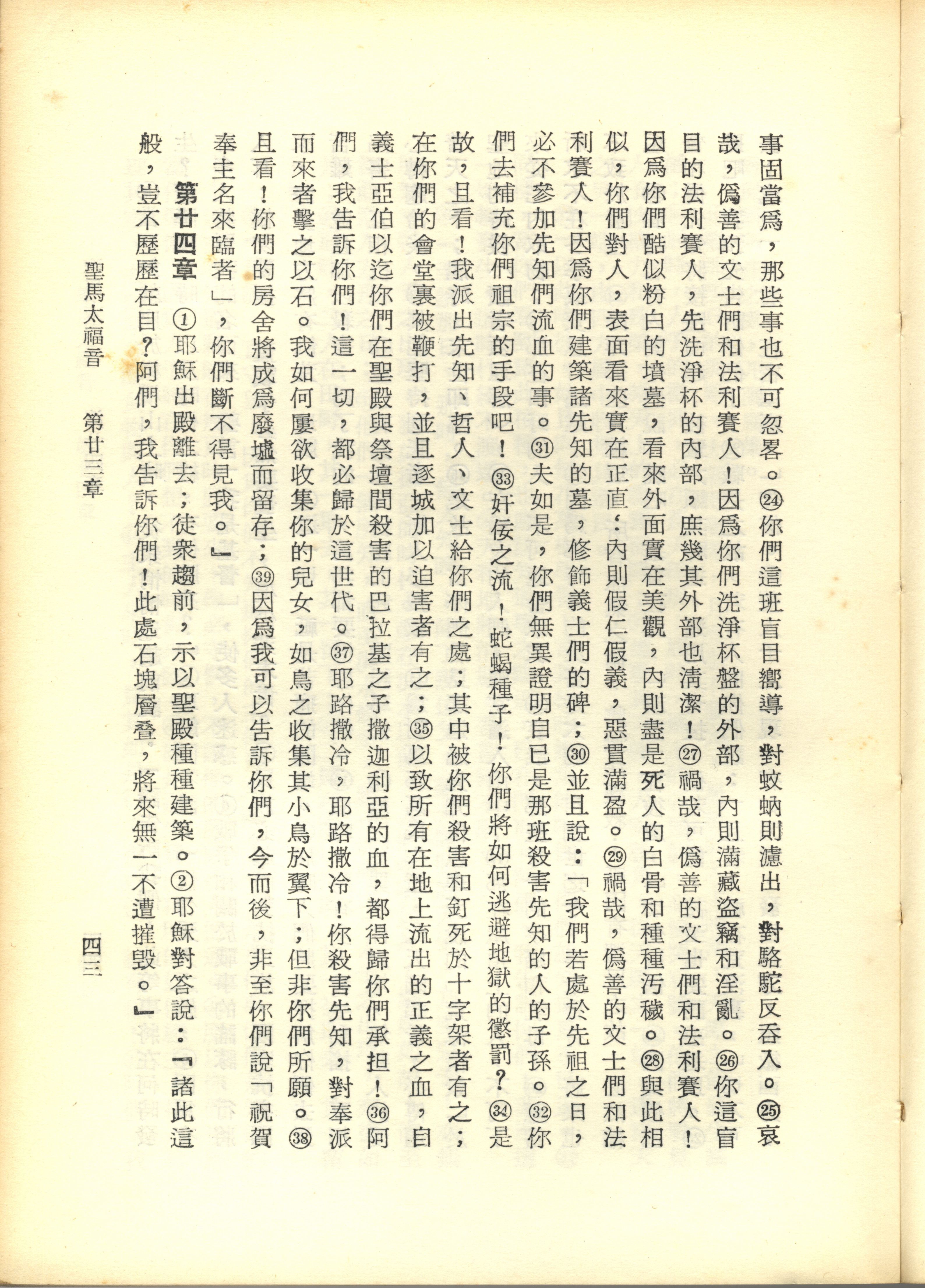 1967年新譯新約全集 馬太福音 23 章 24 節到 24 章 2 節