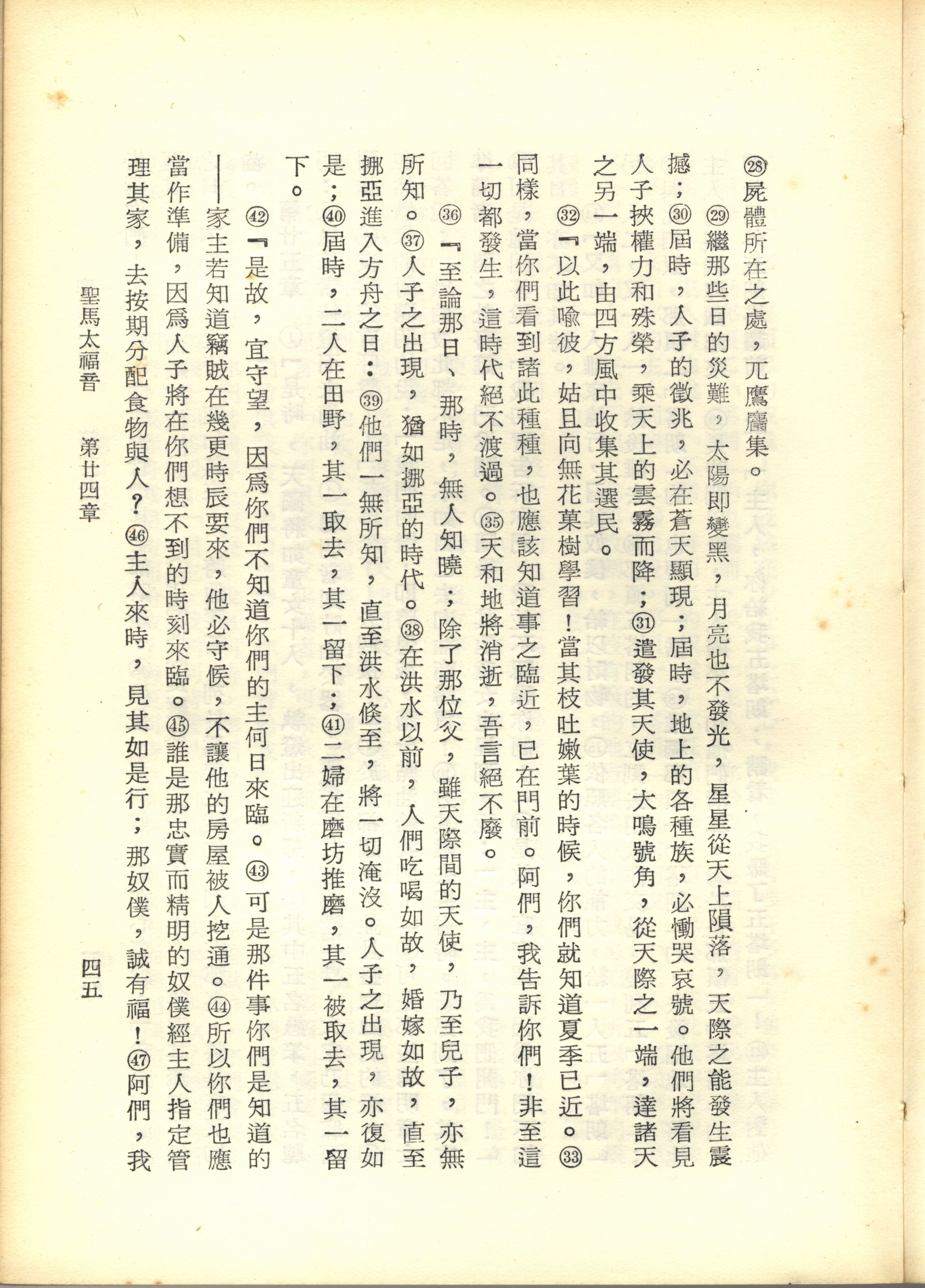 1967年新譯新約全集 馬太福音 24 章 28 節到 24 章 47 節