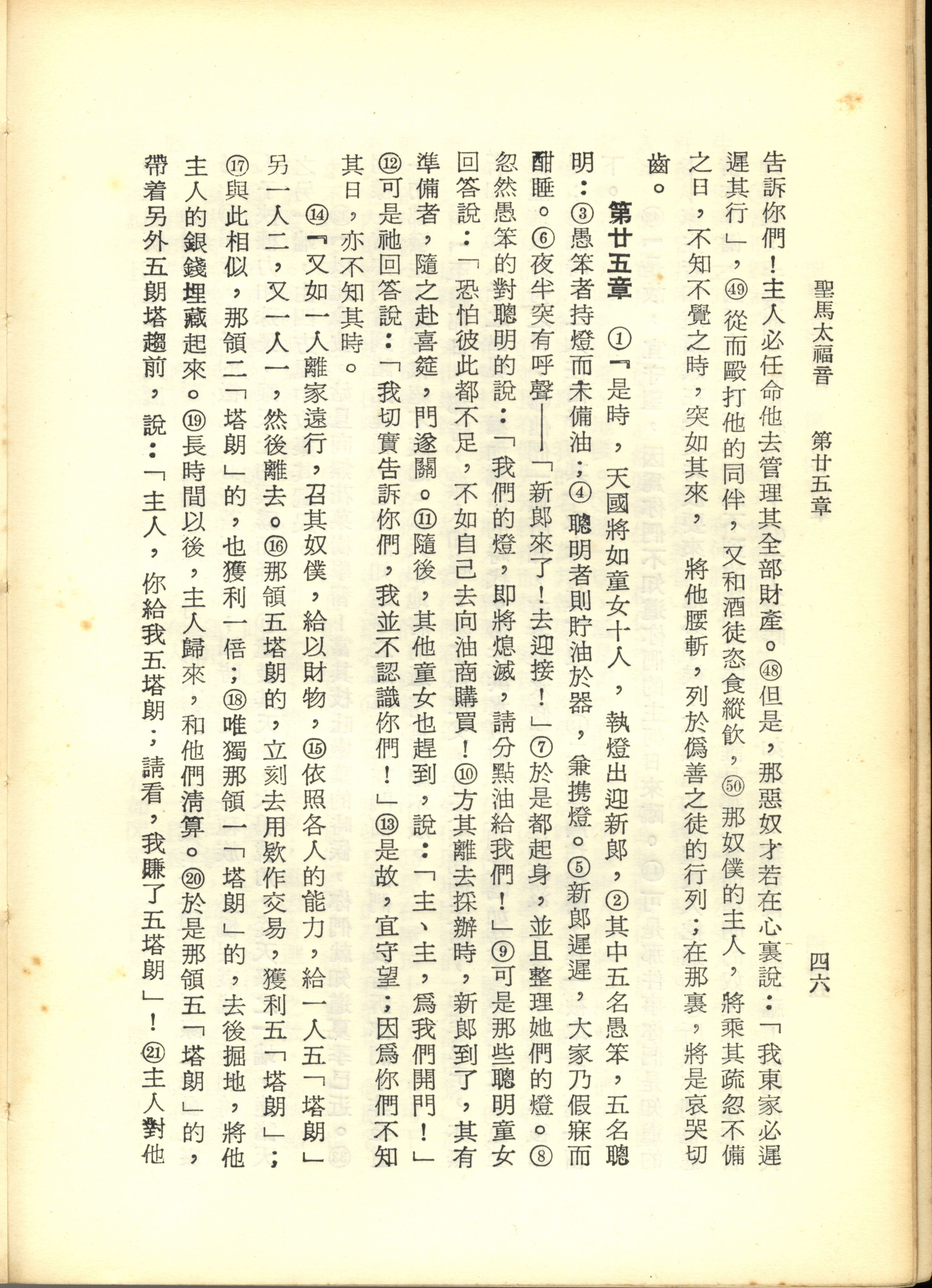 1967年新譯新約全集 馬太福音 24 章 48 節到 25 章 21 節
