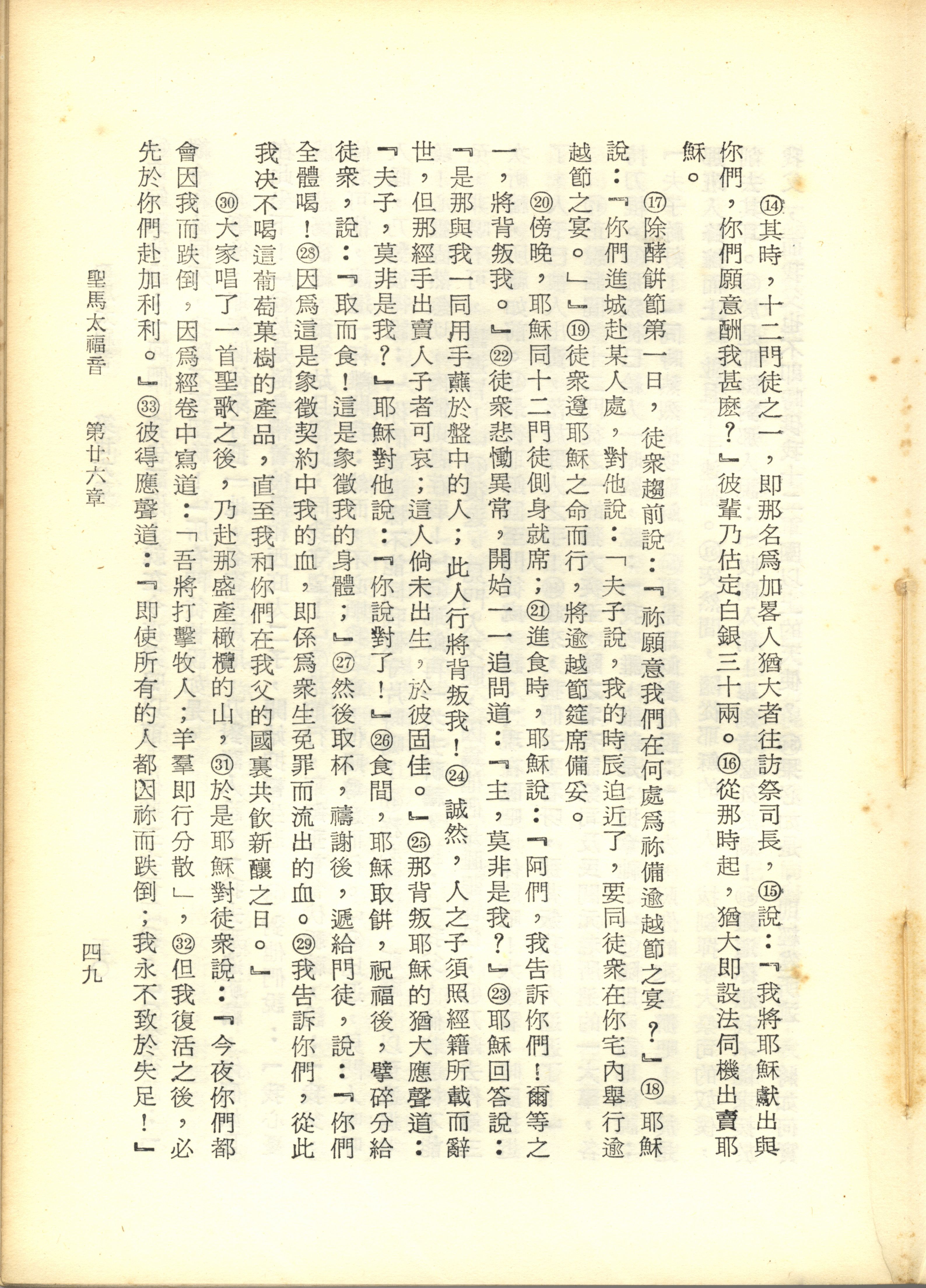 1967年新譯新約全集 馬太福音 26 章 14 節到 26 章 33 節