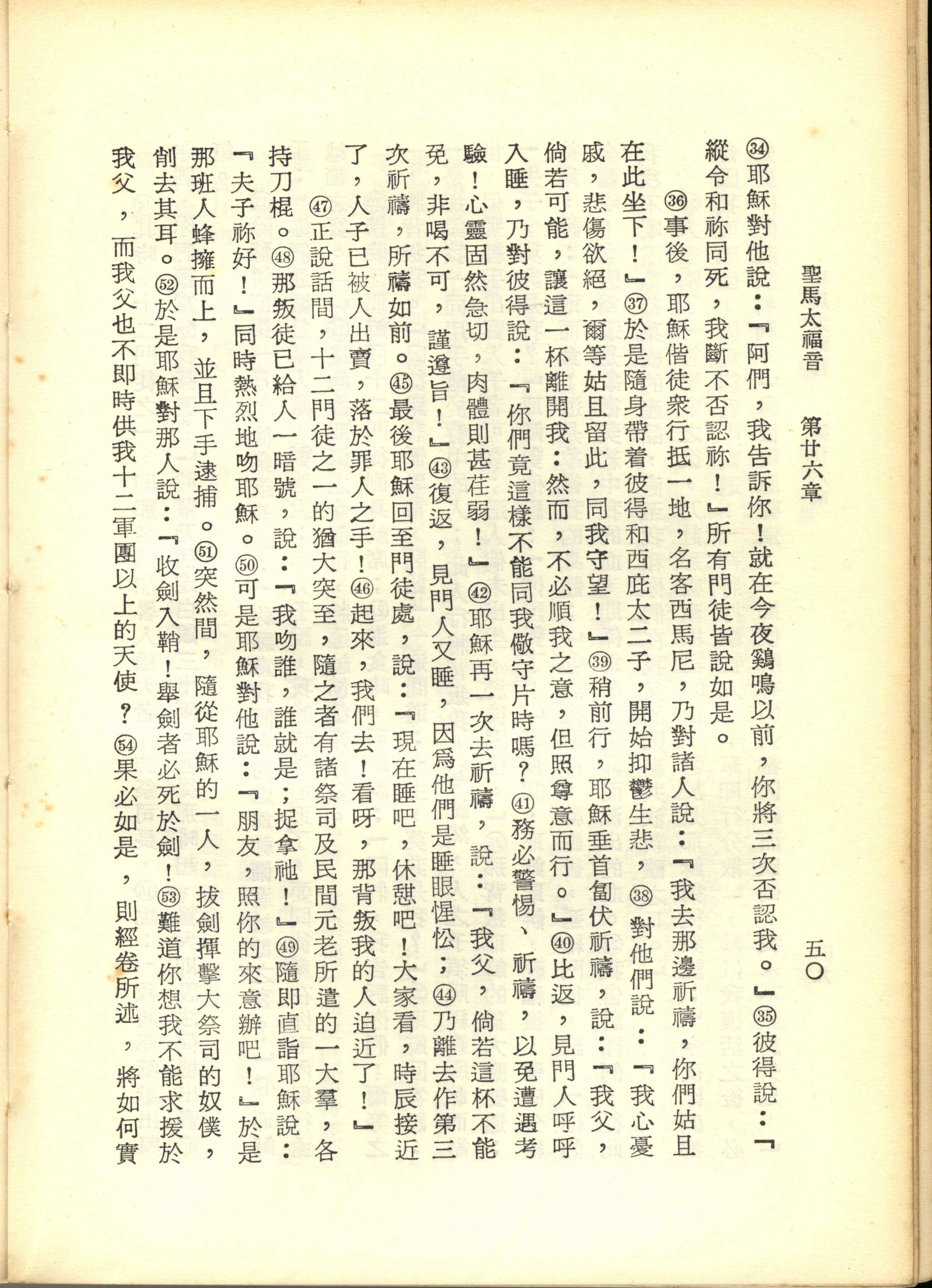 1967年新譯新約全集 馬太福音 26 章 34 節到 26 章 54 節
