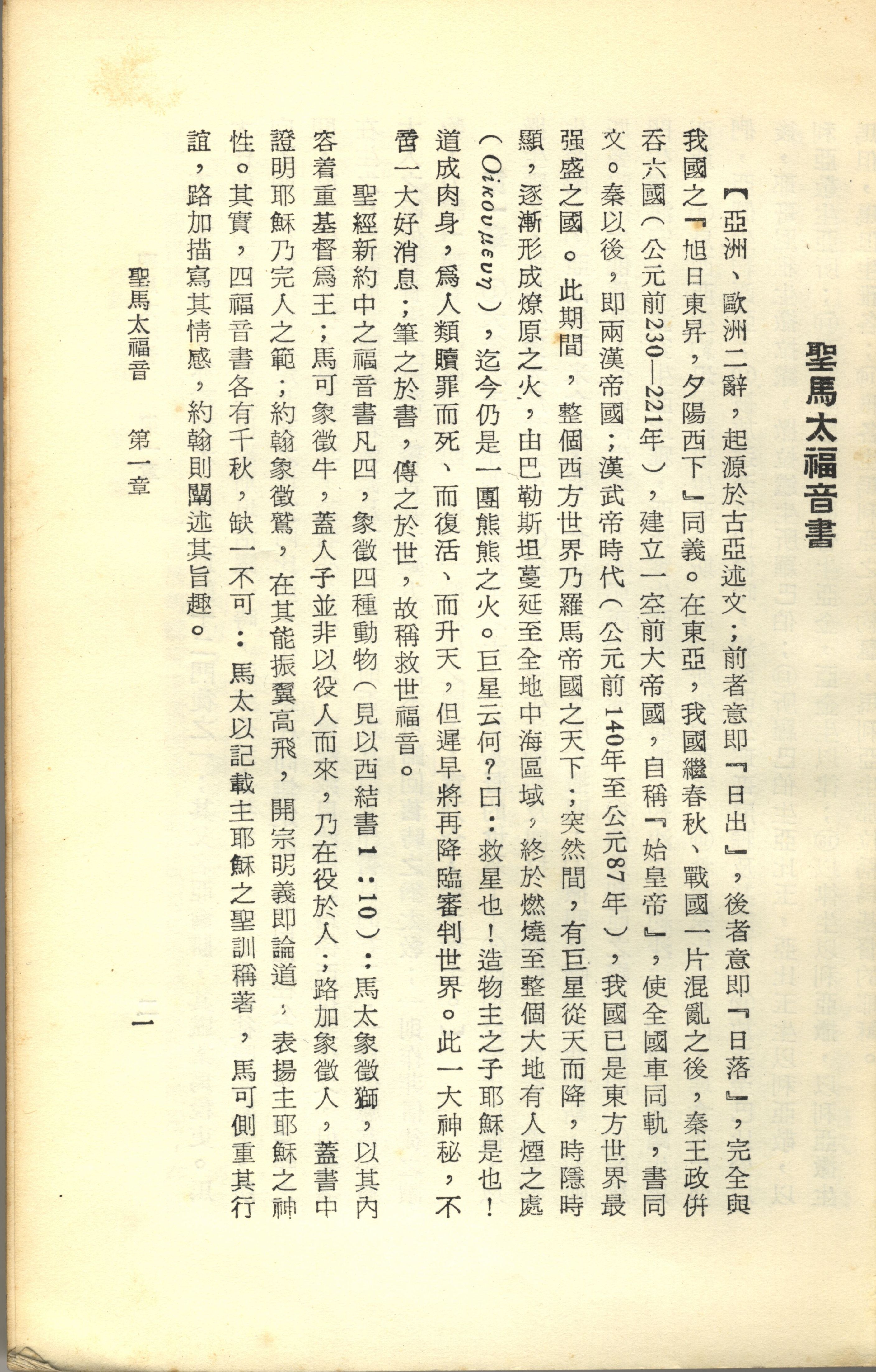 1967年新譯新約全集 馬太福音 1 章 1 節到 1 章 1 節