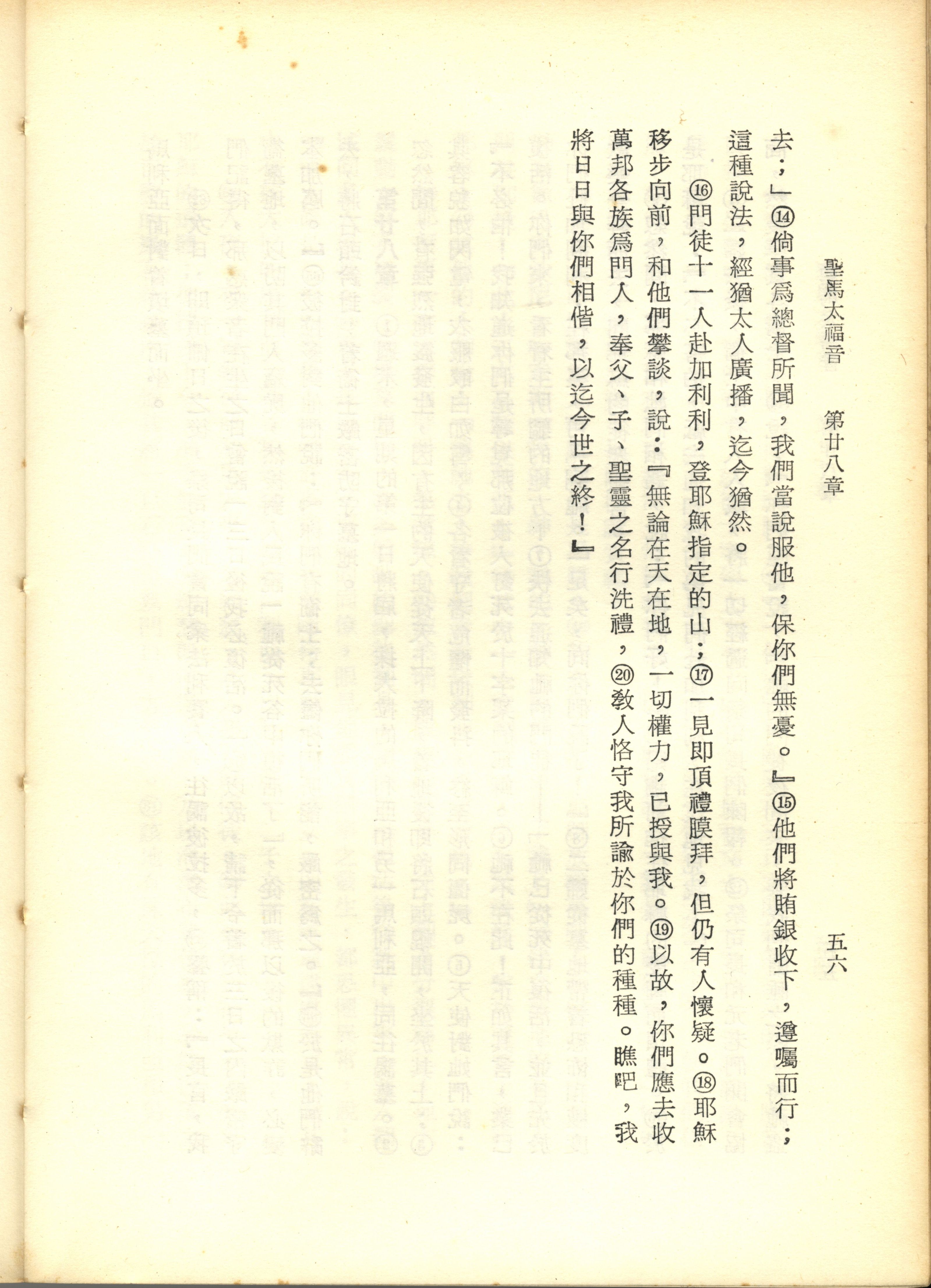 1967年新譯新約全集 馬太福音 28 章 14 節到 28 章 20 節