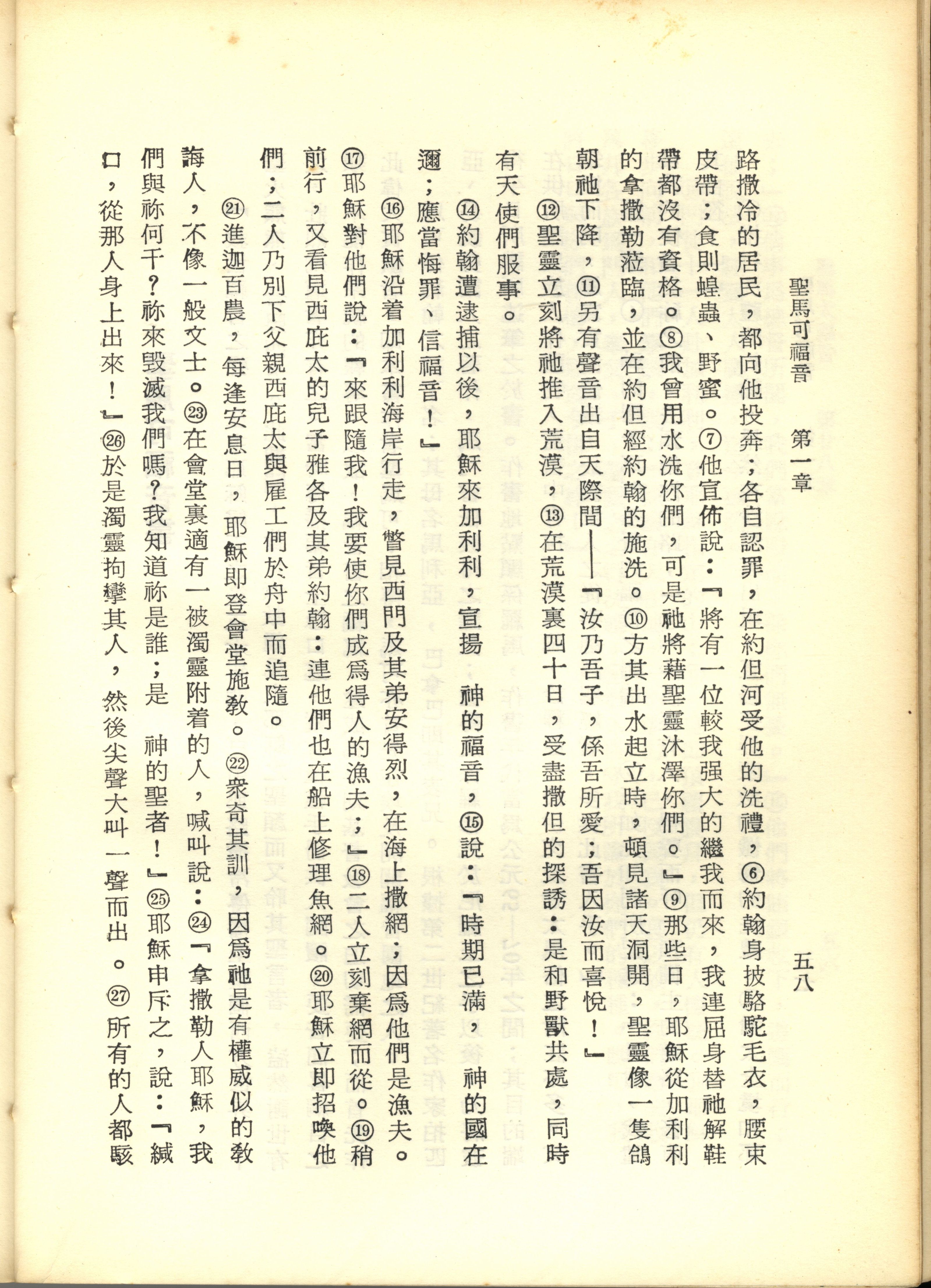 1967年新譯新約全集 馬可福音 1 章 6 節到 1 章 27 節