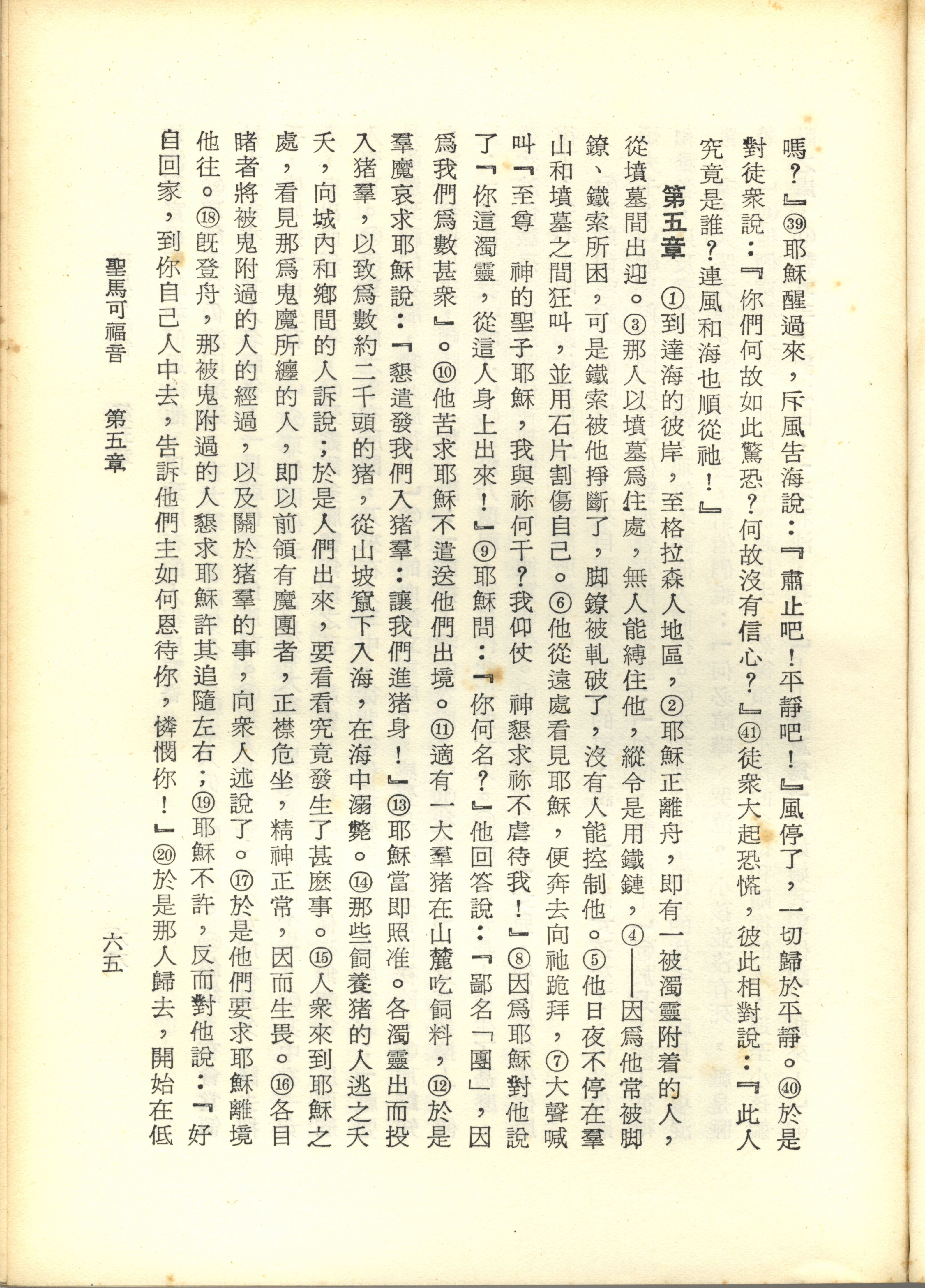 1967年新譯新約全集 馬可福音 4 章 39 節到 5 章 20 節