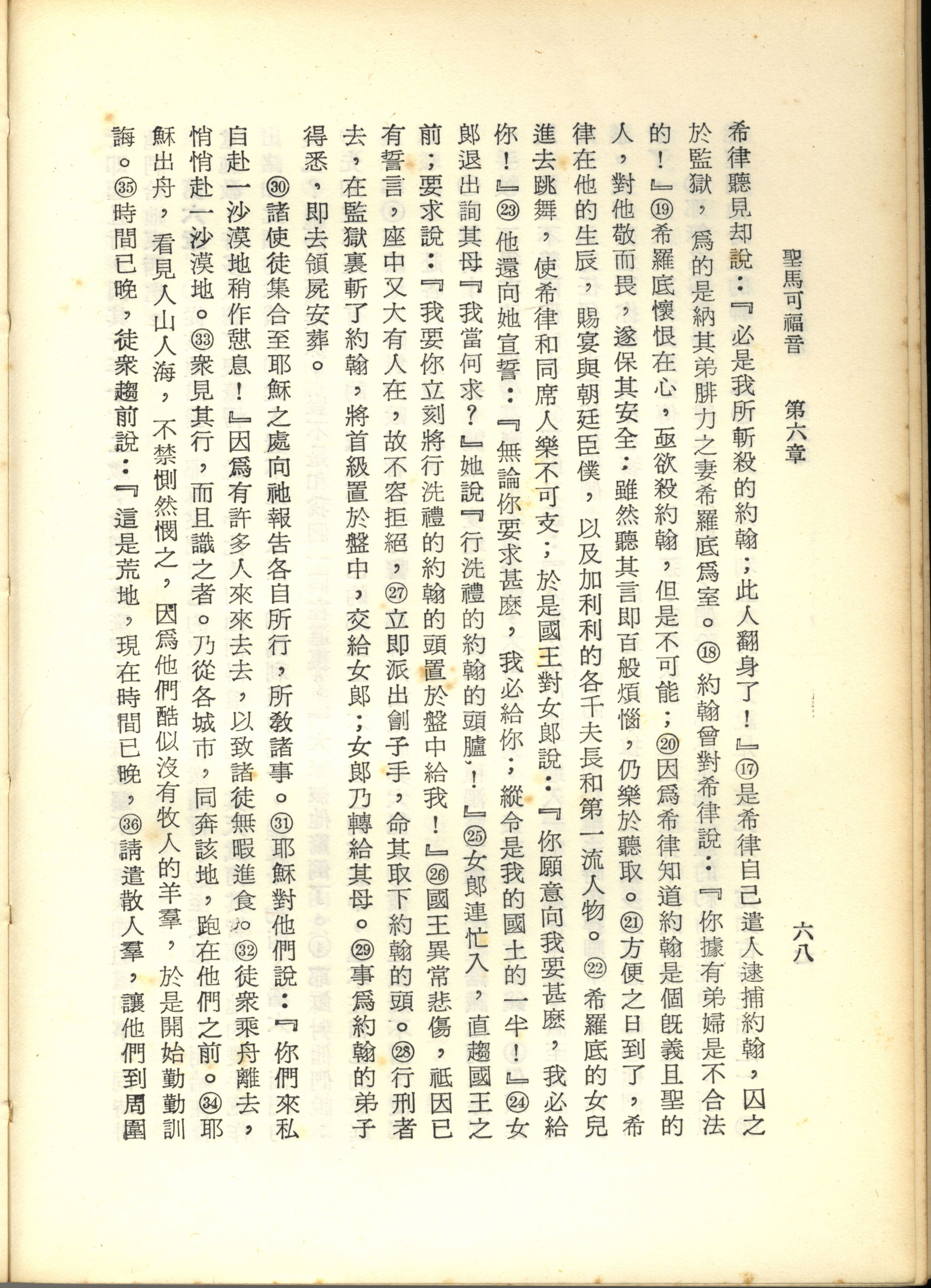 1967年新譯新約全集 馬可福音 6 章 17 節到 6 章 36 節