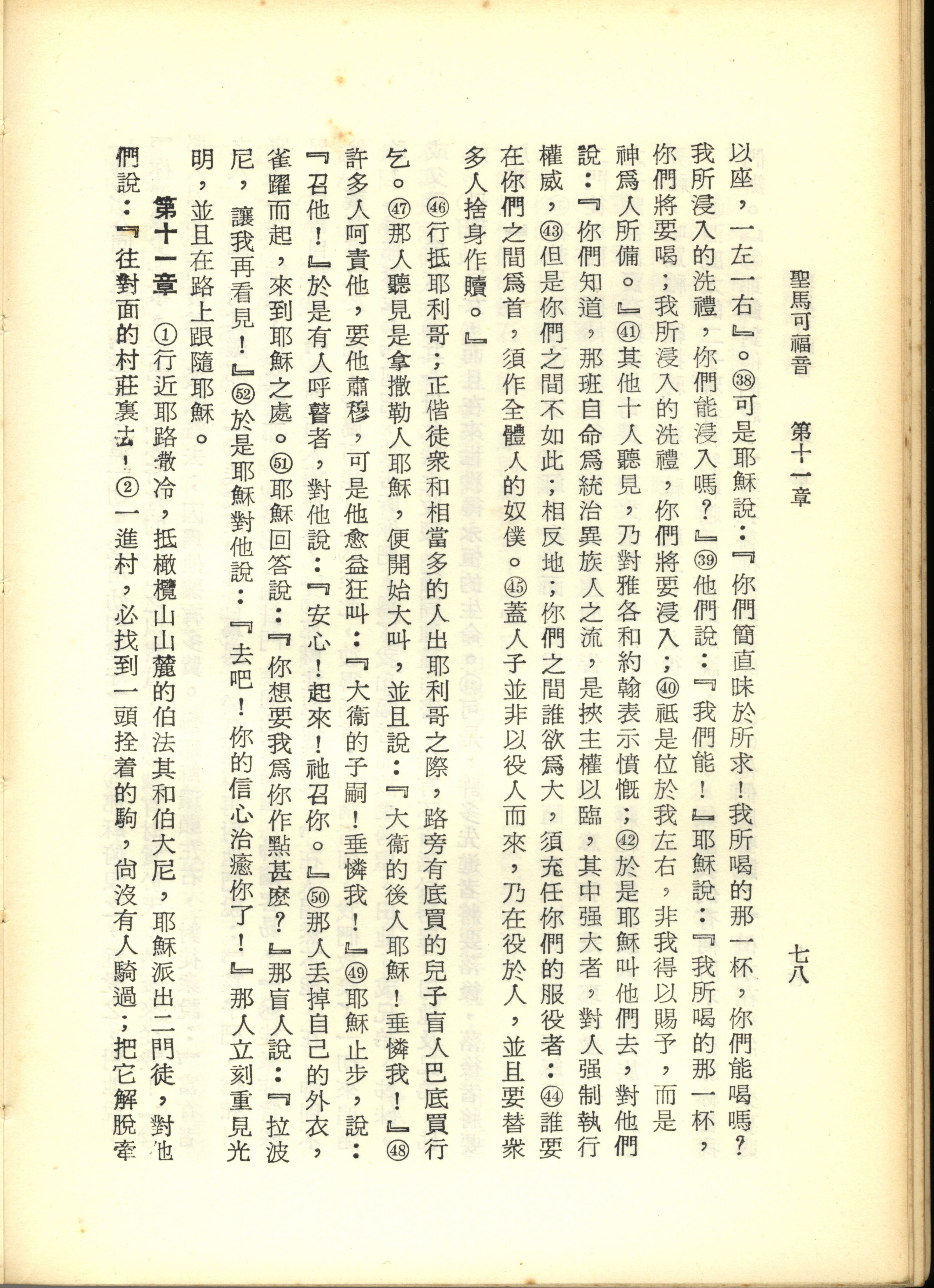 1967年新譯新約全集 馬可福音 10 章 38 節到 11 章 2 節