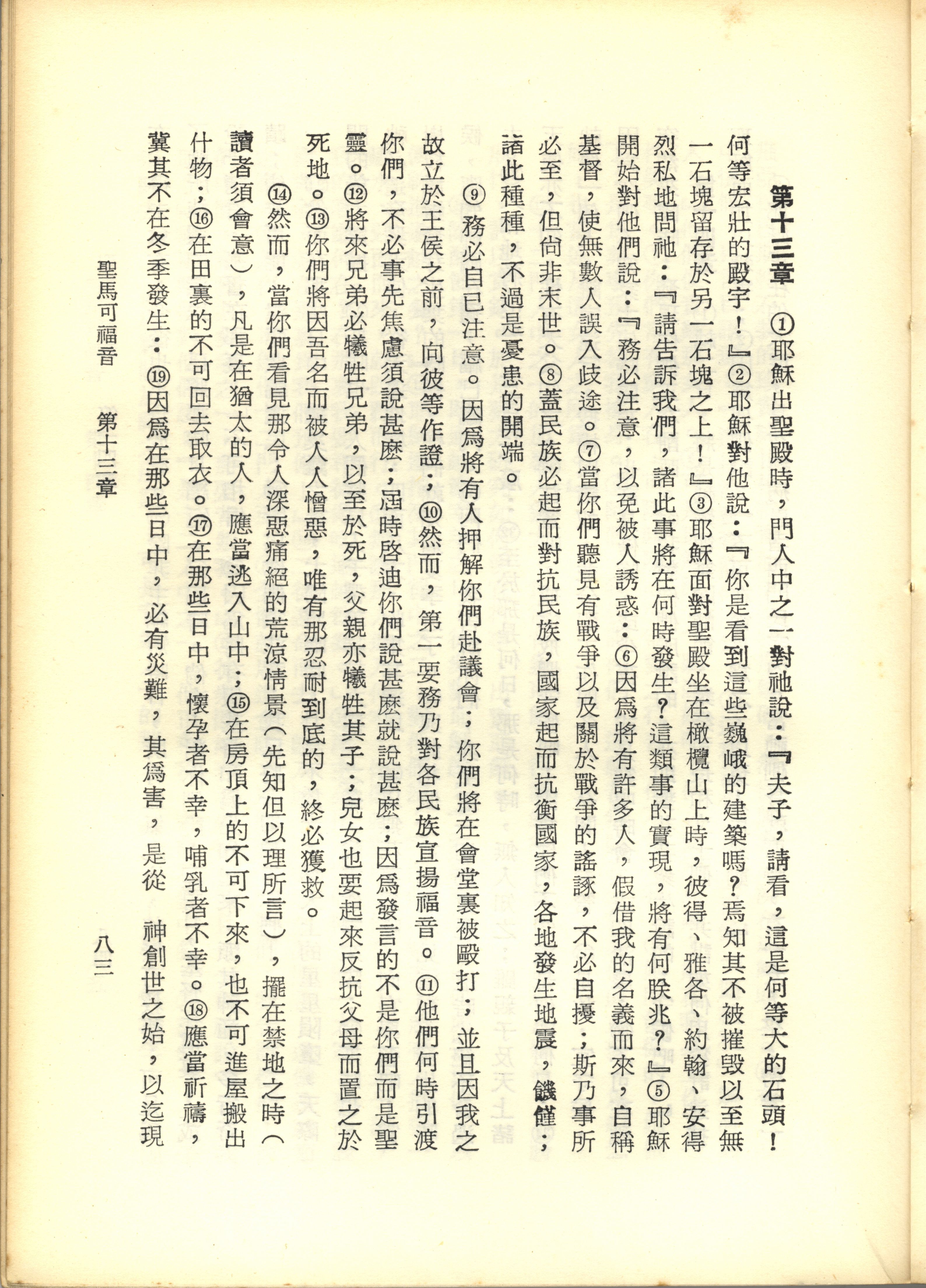 1967年新譯新約全集 馬可福音 13 章 1 節到 13 章 19 節