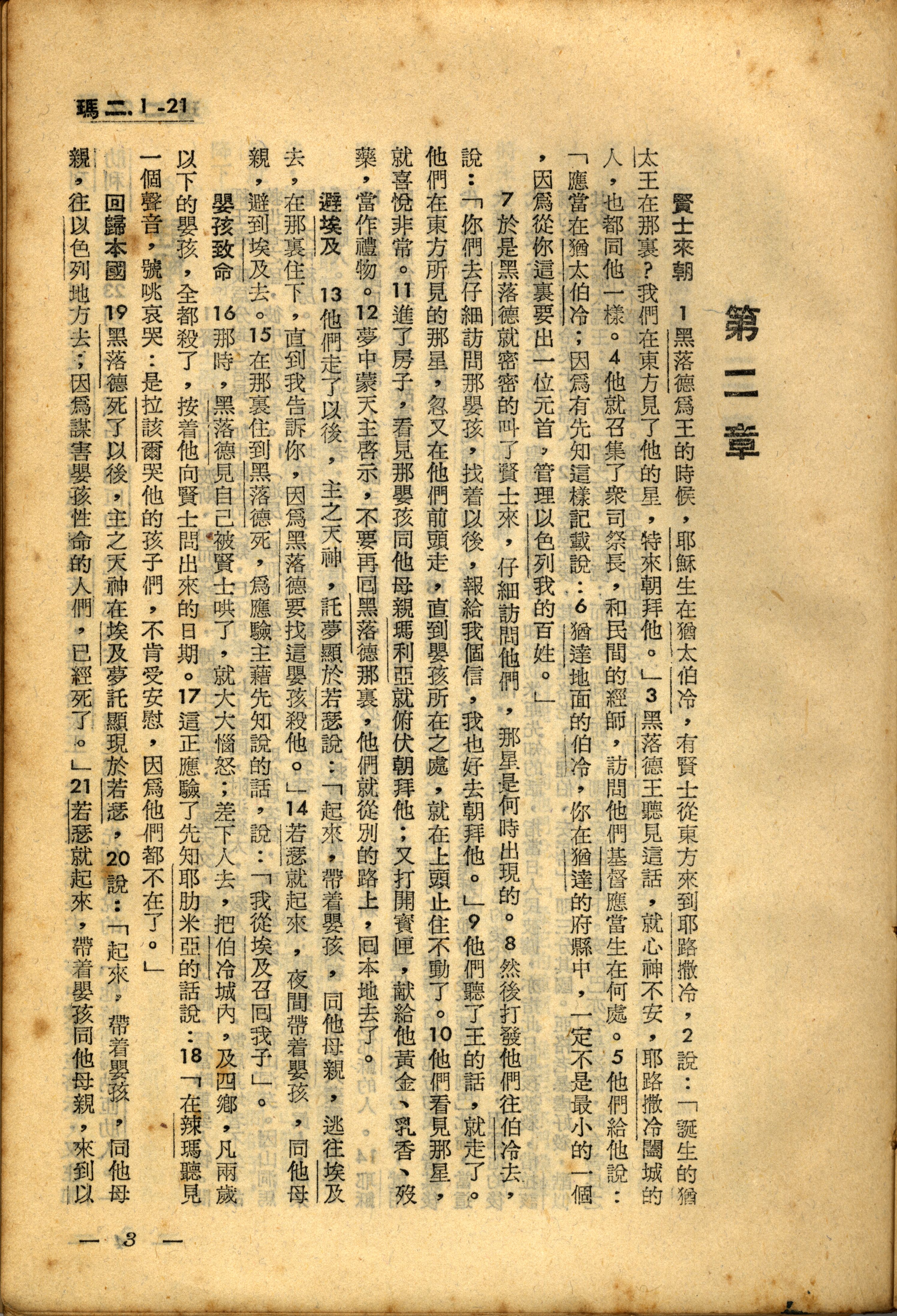 1956年新經全集 馬太福音 2 章 1 節到 2 章 21 節