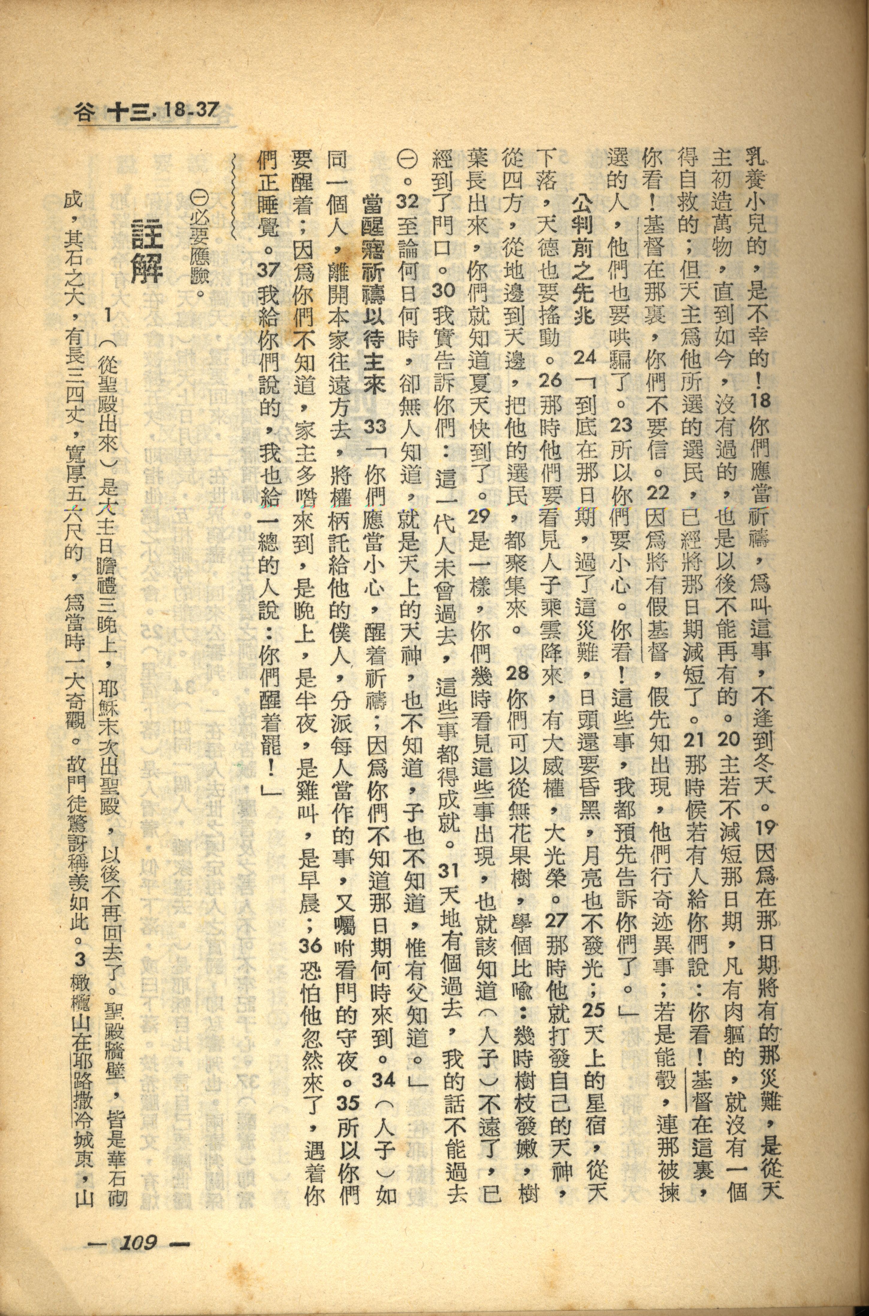 1956年新經全集 馬可福音 13 章 18 節到 13 章 37 節