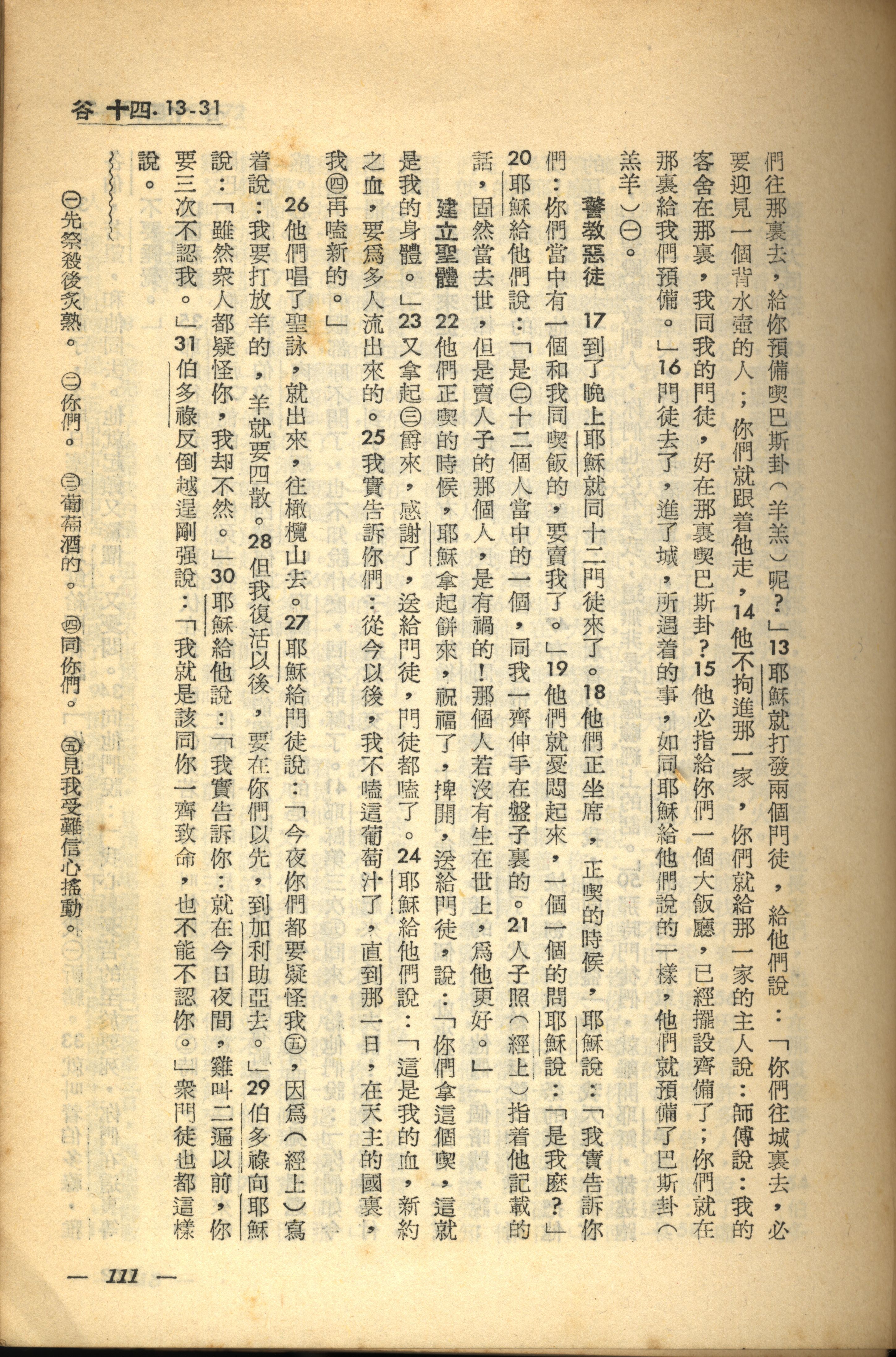 1956年新經全集 馬可福音 14 章 13 節到 14 章 31 節
