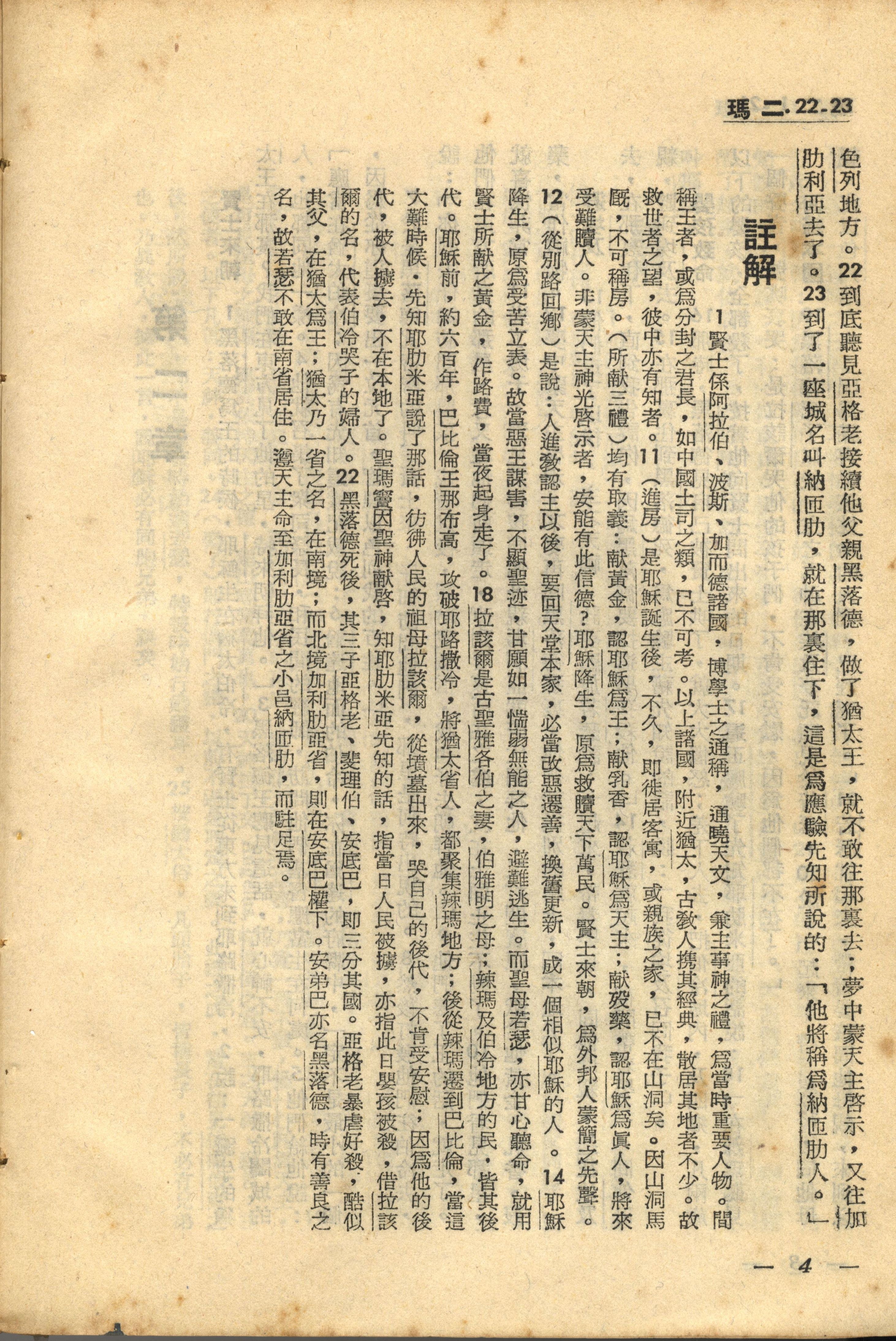1956年新經全集 馬太福音 2 章 22 節到 2 章 23 節