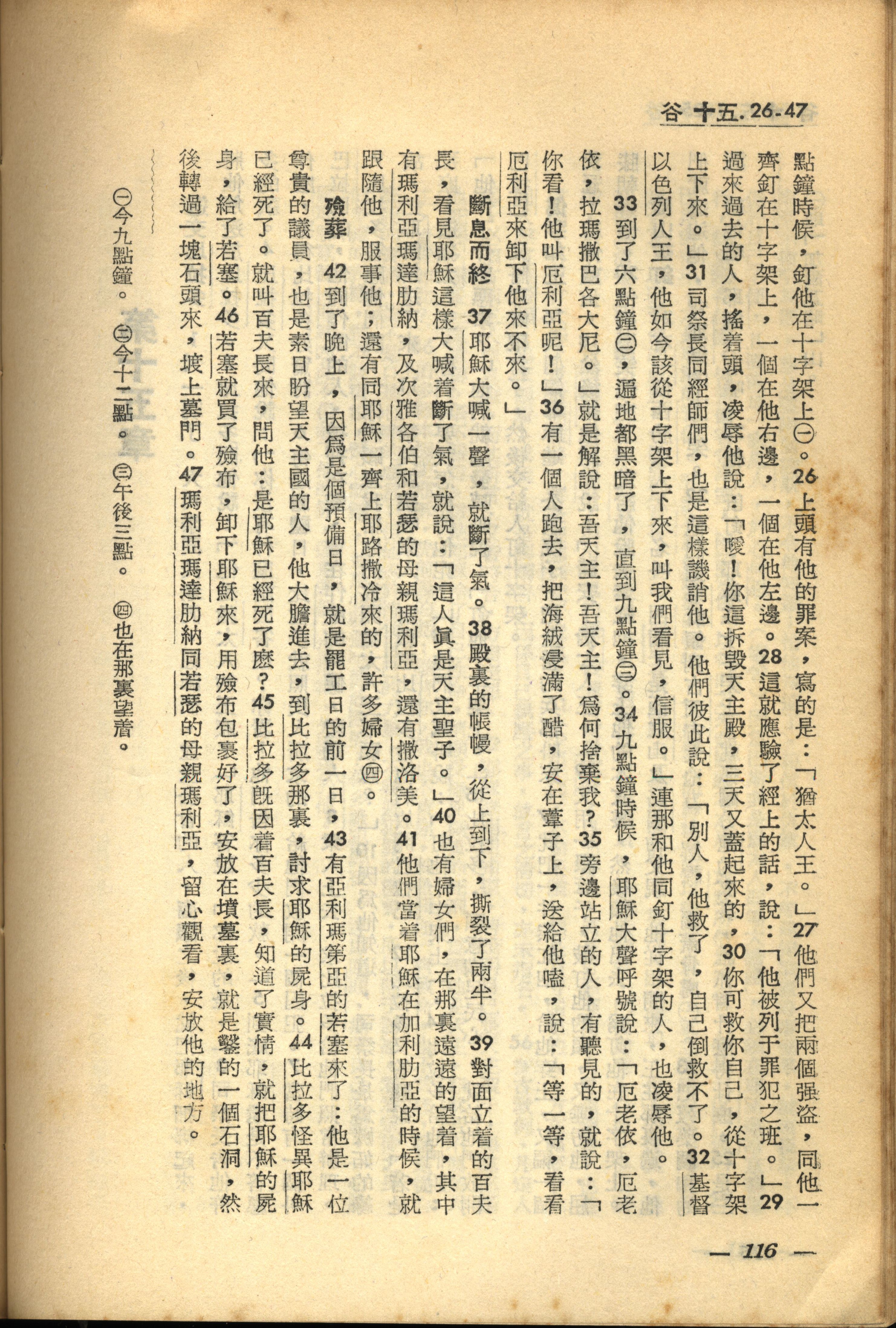 1956年新經全集 馬可福音 15 章 26 節到 15 章 47 節