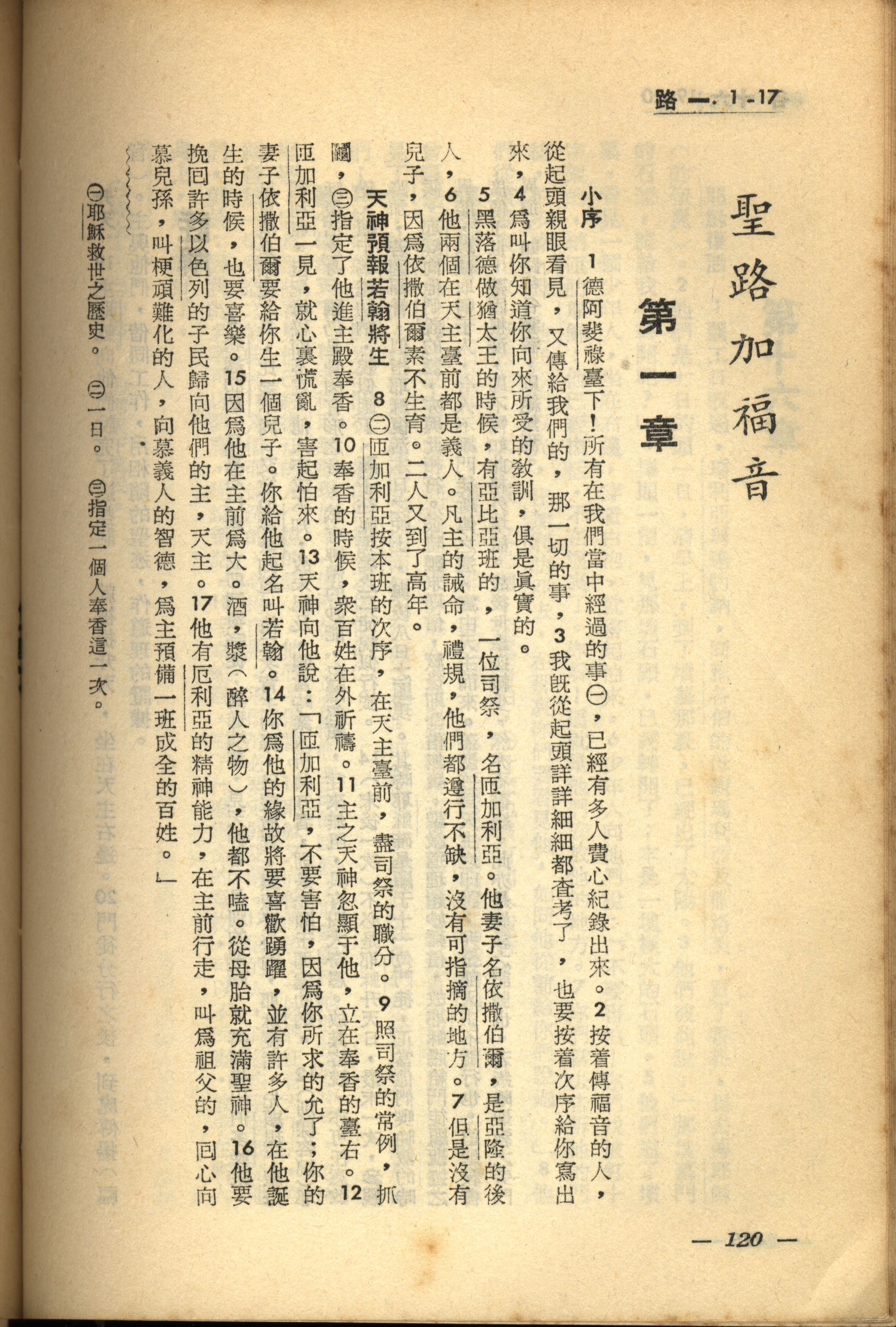 1956年新經全集 路加福音 1 章 1 節到 1 章 17 節