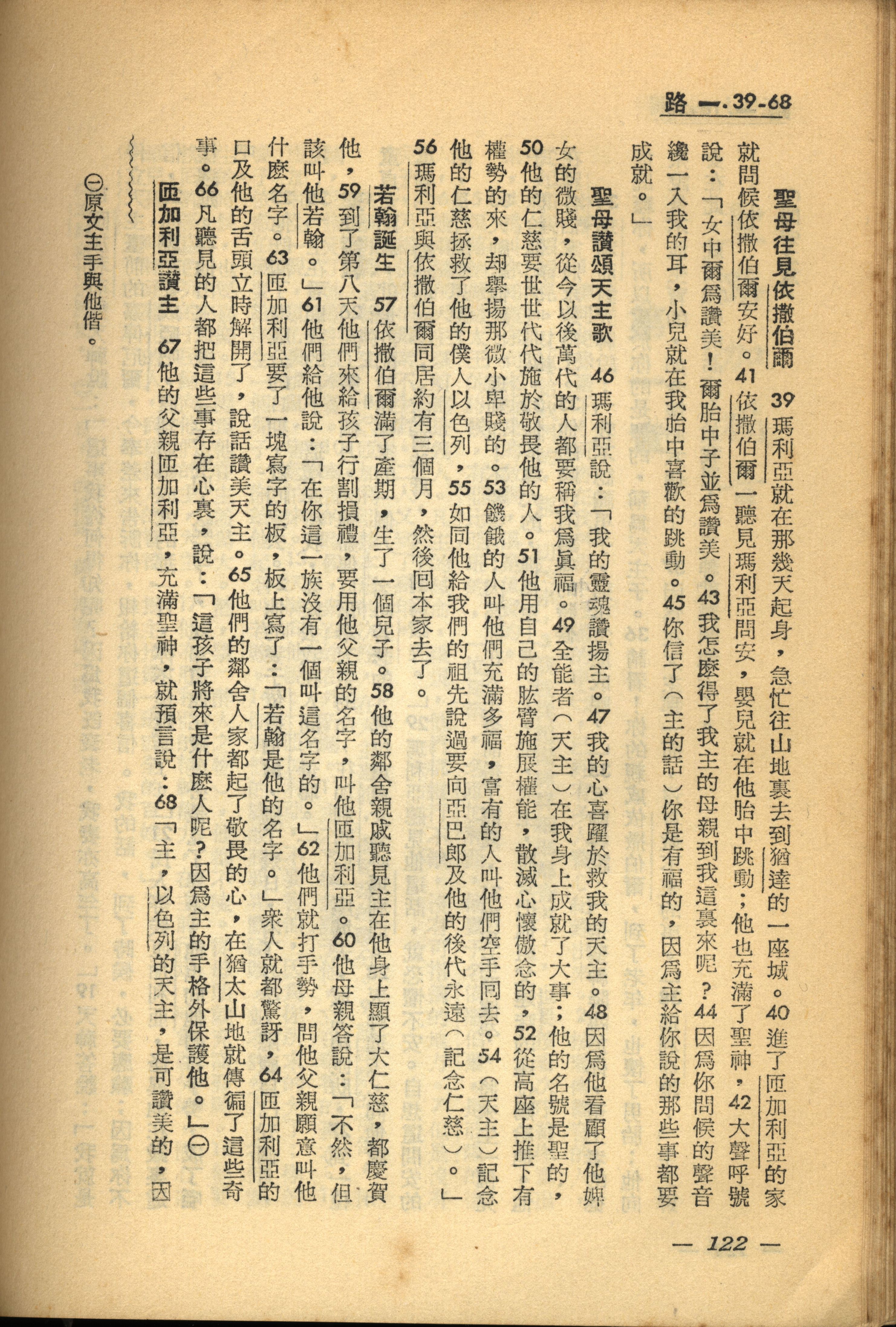 1956年新經全集 路加福音 1 章 39 節到 1 章 68 節